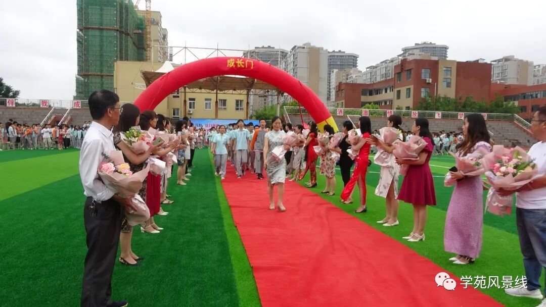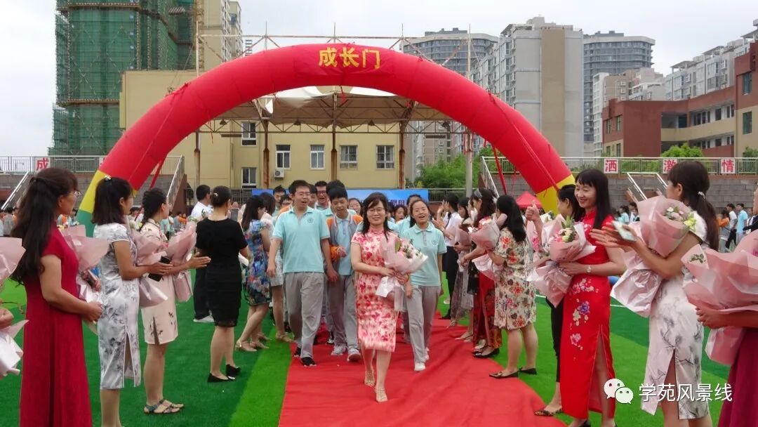 成长门前挂高粽。各班在班主任的带领下依次穿越“成长门”,取鱼跃龙门,蟾宫折桂的喜头。学生们心有猛虎、气势昂扬!教师们从旁助阵,保驾护航!
