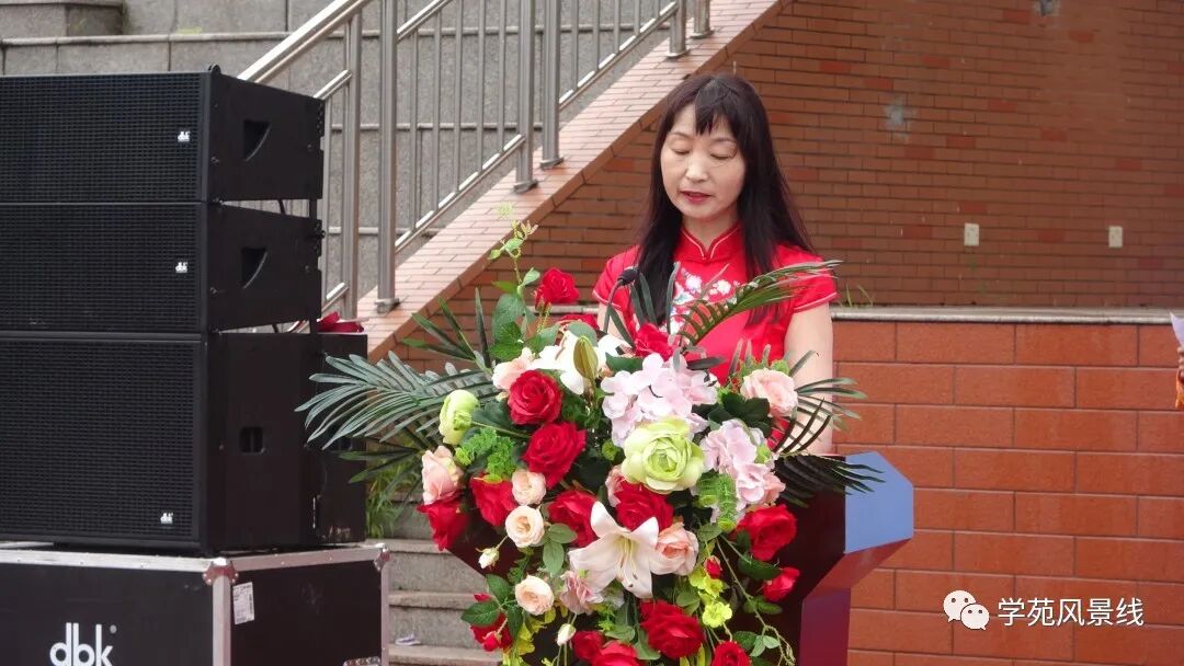 第二项是教师代表菅艳君老师致祝福词。她表示,2020届是最让人难忘、最特别的一届学生,望大家中考取得佳绩。她的发言激昂向上,表达了对学生的殷切希望。