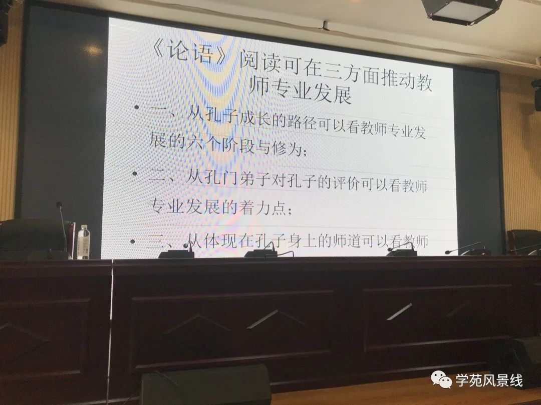 任民教授提出《论语》阅读可在三方面推动教师专业发展。任教授围绕三个方面对此次讲座展开讲解。第一、从孔子成长的路径可以看教师专业发展的六个阶段与修为。第二、从孔子弟子对孔子的评价可以看教师专业发展的着力点。第三、从体现在孔子身上的师道可以看教师专业发展最需要的专业精神。讲座现场任民教授幽默亲切的话语和毫不保留的分享使在场的学员兴致勃勃,收获颇多。