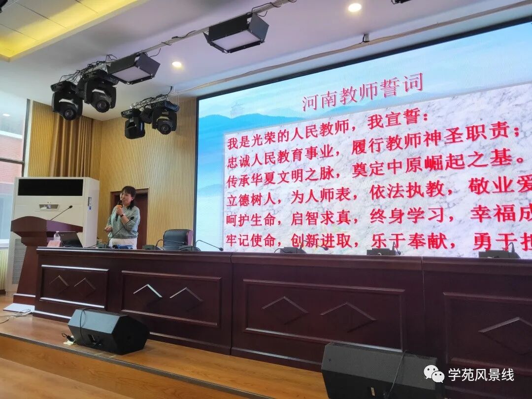 正式授课之前,吕娟老师先带领各位新入职的老师进行河南教师宣誓。