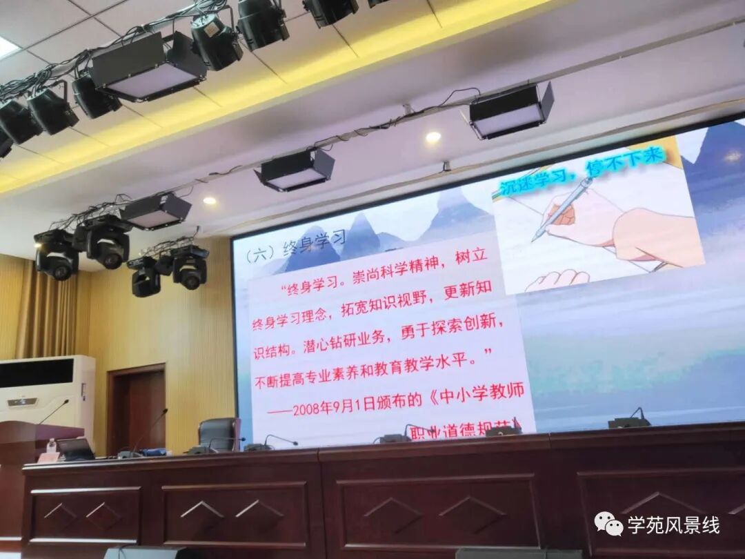 接着,吕老师讲述了《中小学教师职业道德规范》,重点强调了终身学习这一点,希望各位老师能够树立终身学习理念,拓宽知识视野,更新知识结构,不断学习进步。