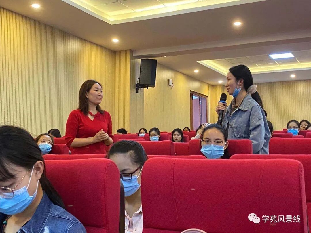 她提到,课堂教学的生命力不是“复制”,而是在研究中不断“刷新”,甚至可以说在颠覆中重生,在更高的起点上不断实现自我超越。针对课堂教学,董老师与新人教师共同探讨交流,并从以下几个方面分享了自己的心得体会:一、走好课堂的基本路线——上课、看课,在案例积累中形成“课感”,变公开课为家常课;二、通过听课、研课提升课堂的专业内涵;三、沉潜课堂,拥有自己的教学主张。