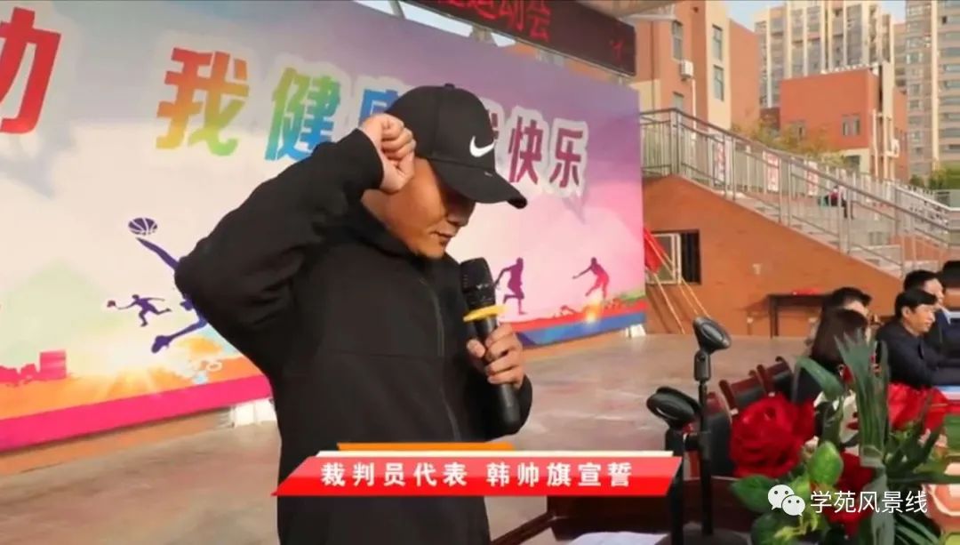 接着韩帅旗老师作为裁判员代表庄严宣誓!他表示裁判员们将坚决服从大会的指挥,严格遵守竞赛规则和裁判员纪律,尊重参赛运动员,礼貌裁判,严肃认真,不循私情,秉公办事,圆满完成各项裁判工作!