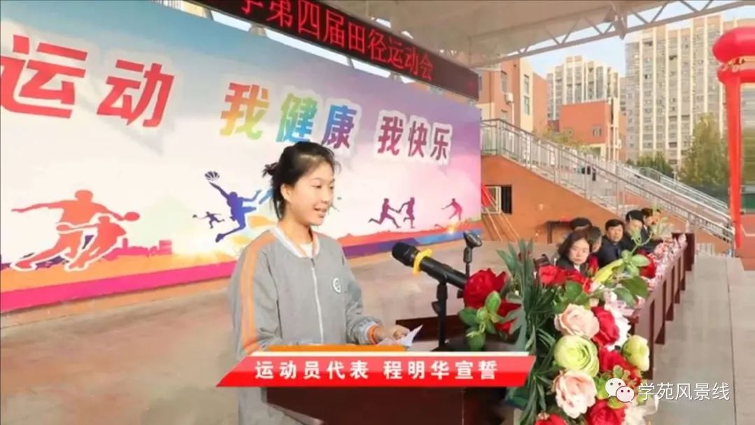 运动员代表九年级八班程明桦同学在发言中谈到,运动员们一定会在此次比赛中赛出风采、赛出水平!