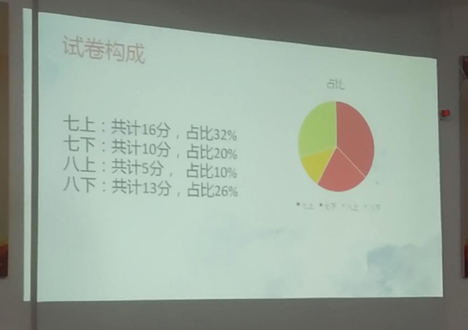 接着由二中李老师对2020年中招考试试卷做出详细的分析。李老师的分析以PPT和解说的形式展示。主要有以下几个方面: