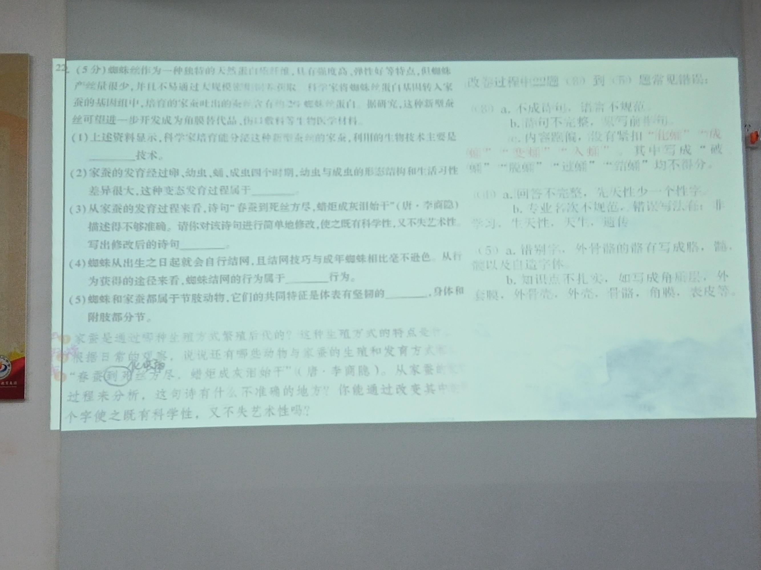 最后段老师公布试卷的得分率,并对得分率低的题做出分析,提出以下教学建议: