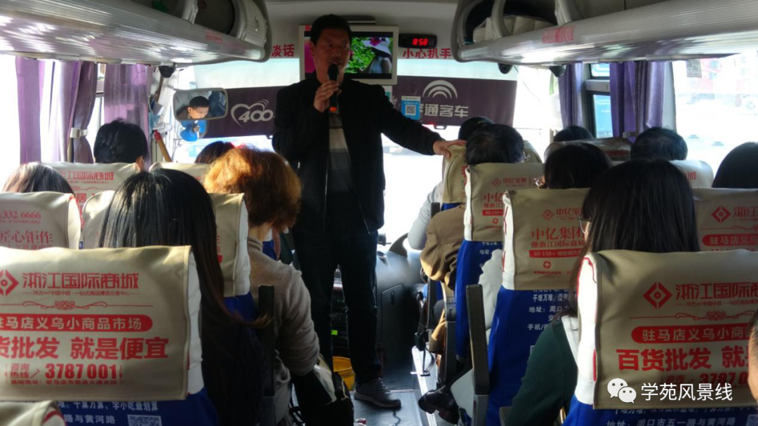 在去往学习的路上,党支部文体委员刘永胜同志介绍本次活动的行程安排。