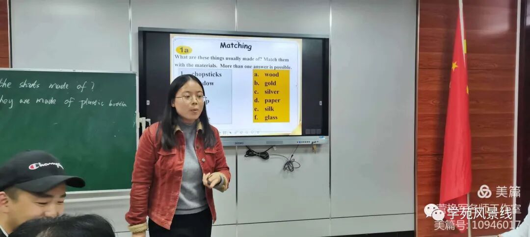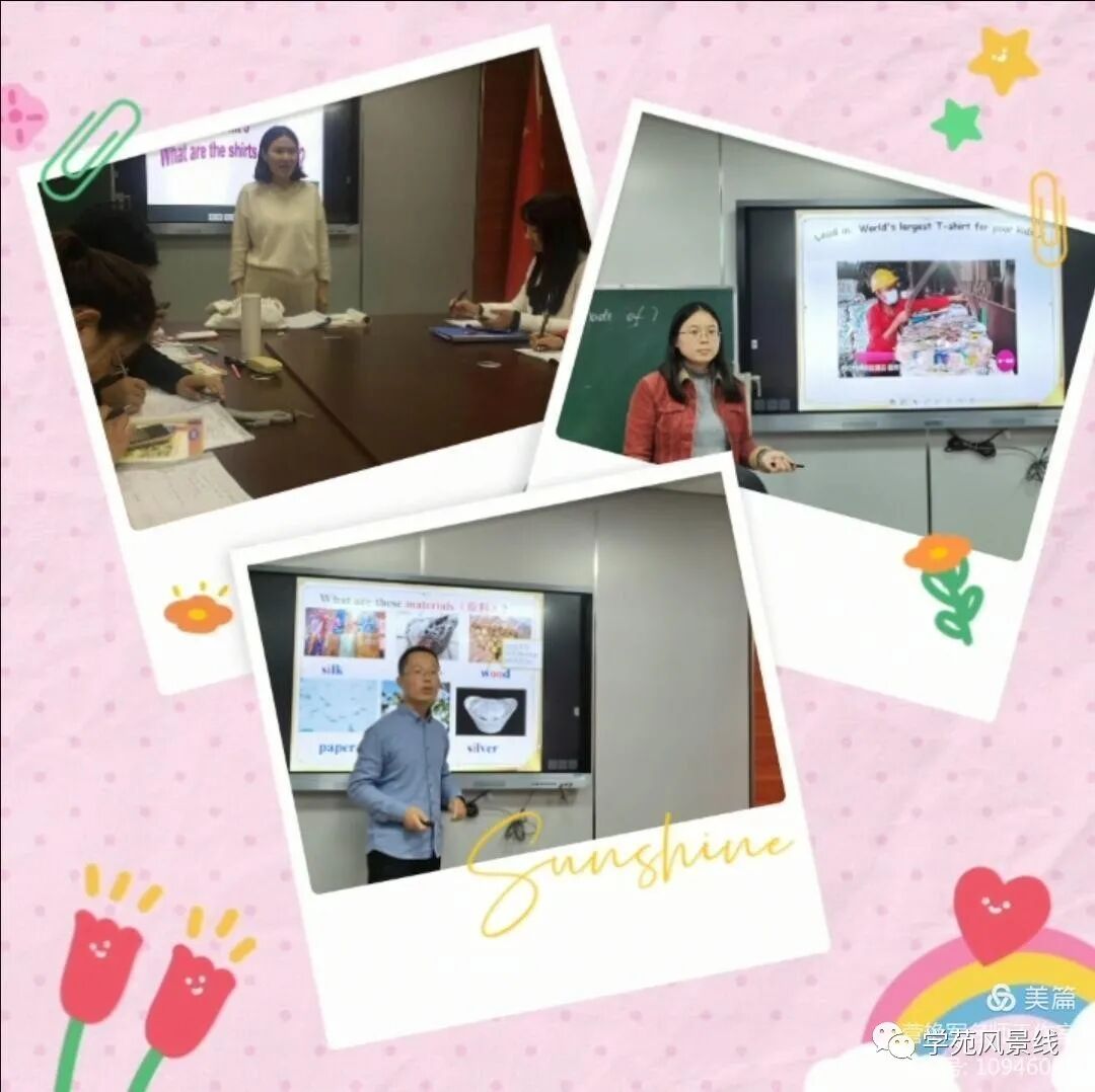 九年级的老师们以Unit5 What are the shirts made of ?为题,尹雪娇,王雅哲,李政老师分别进行展示。