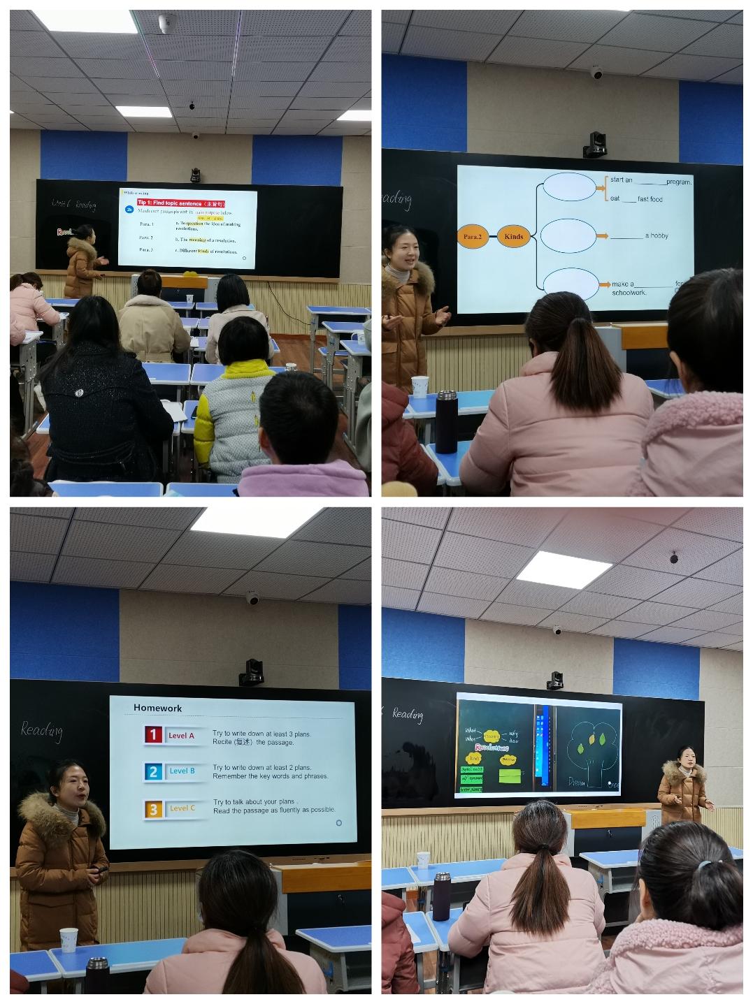 邓庄中学的老师谈到他们的校本教研,三个年级都有备课组长,每一个组都会进行定期会议,并在微信群里边积极探讨。邓庄中学的教研活动定在每星期的第二天,与市区的教研活动分开。邓庄中学的老师为了增强学生的阅读能力,自己购书,并且打印出来,让学生阅读。