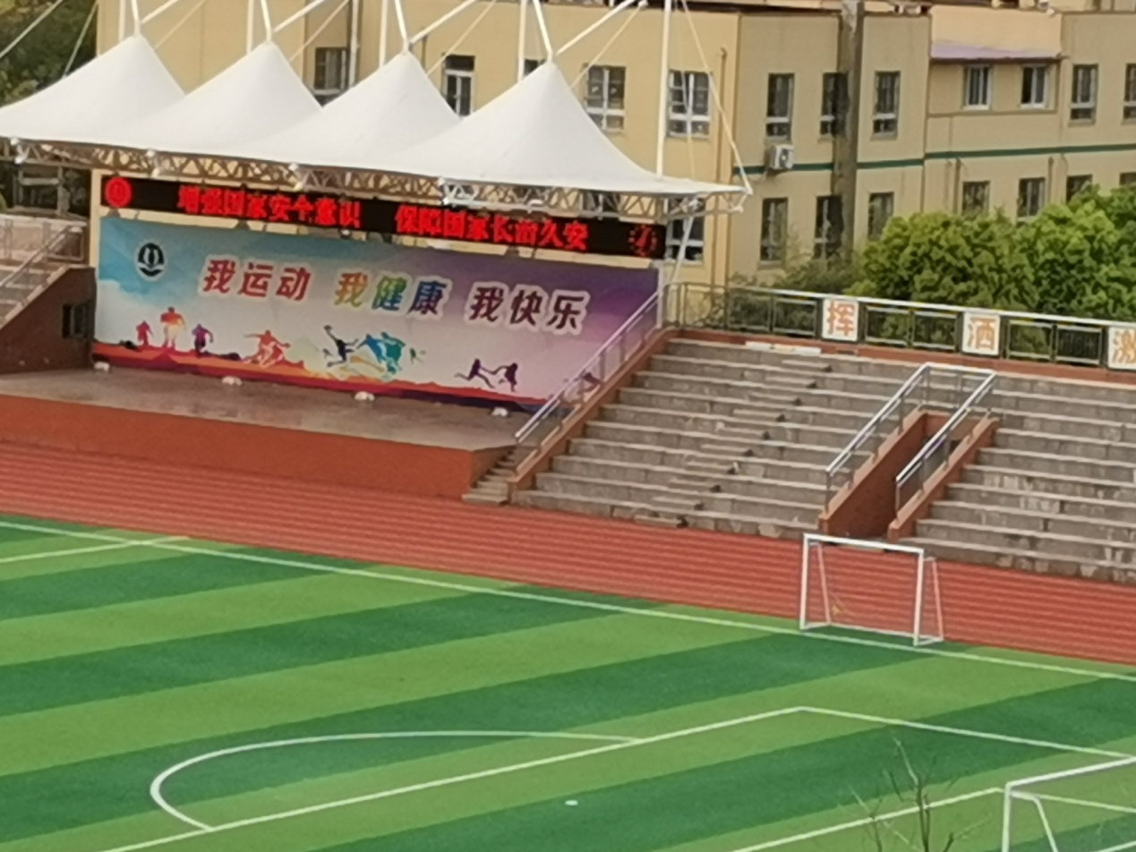 上图为学校操场LED屏的国家安全标语