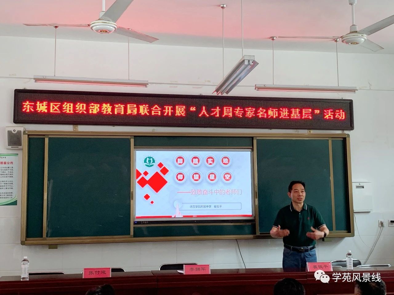 活动由东城区组织部副部长李拥军主持并作重要讲话,许昌学院附属中学崔俊平校长、李晓华主任作为许昌市拔尖人才代表、名师代表出席了活动,并进行了专场讲座。