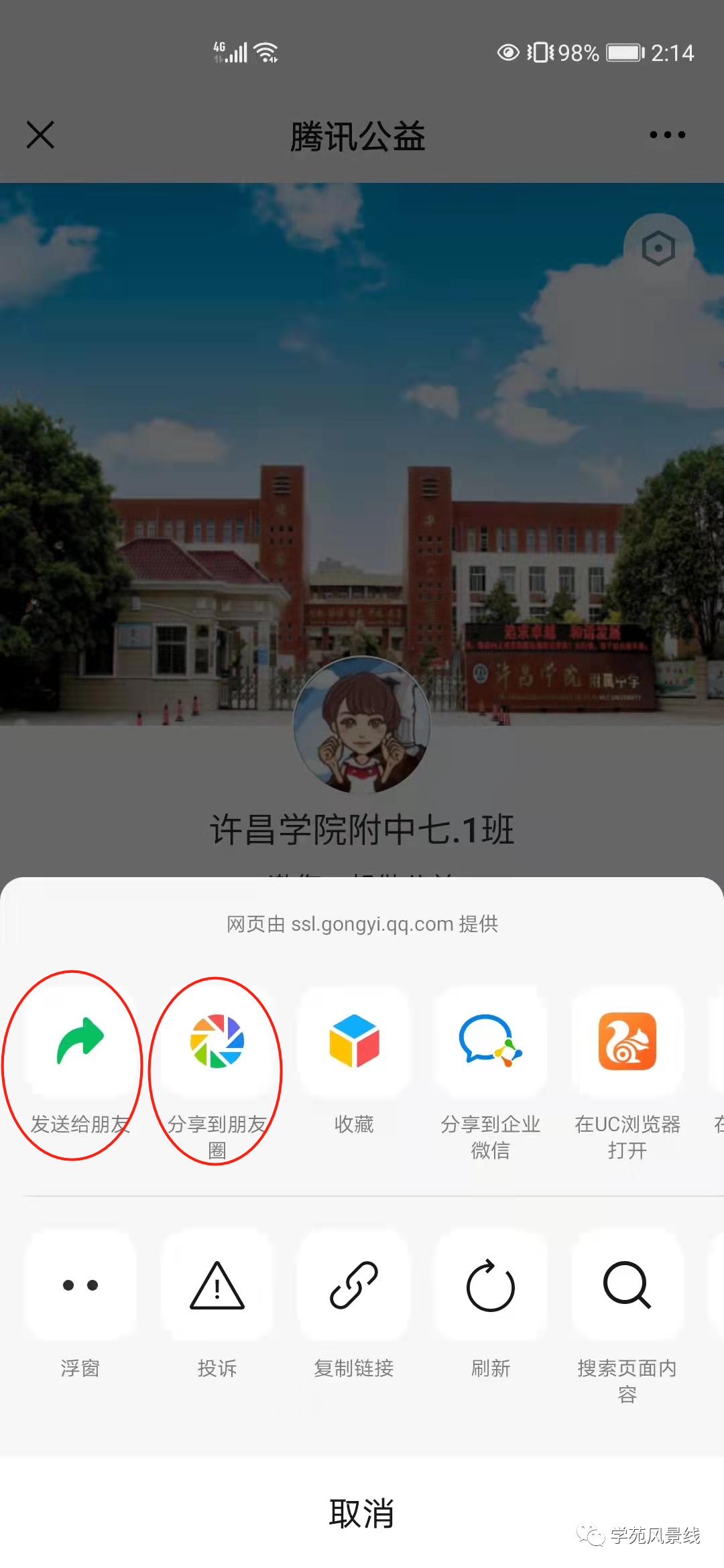 3.家长捐款后可分享链接至朋友圈或好友参与助力活动。