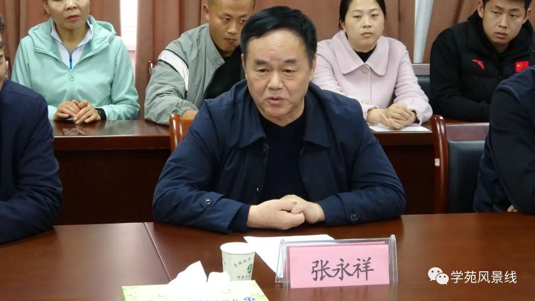 许昌学院招生就业处处长张永祥就高校人才资源为中小学体育教育事业服务的基本思路和前景预期向与会人员分享校地合作中将为学院附中提供更优质的服务,共同培育新时代国家栋梁。