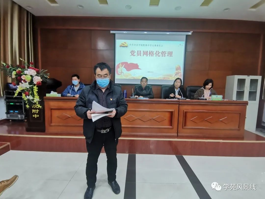 会议第四项,由党办主任周国建同志安排部署我校党员网格化管理,以年级为单位成立党支部小组,划分党员责任区,不断丰富和发展学院附中党建工作。