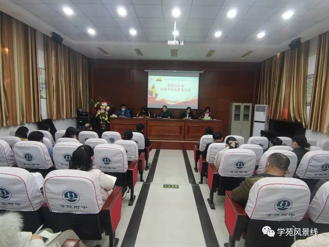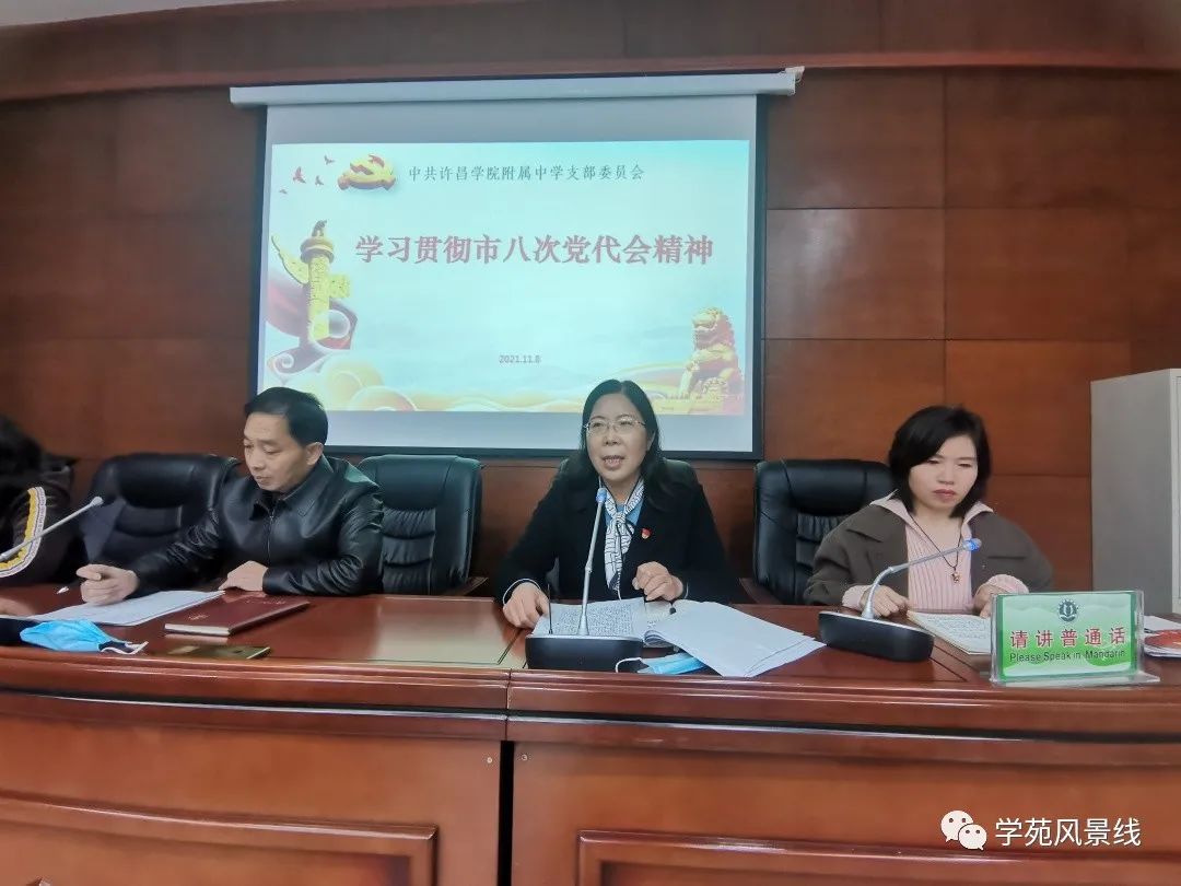 会议第三项,学院附中党支部副书记、副校长陈敏同志传达学习许昌市第八次党代会会议精神,并强调贯彻落实会议精神的三大有效措施。
