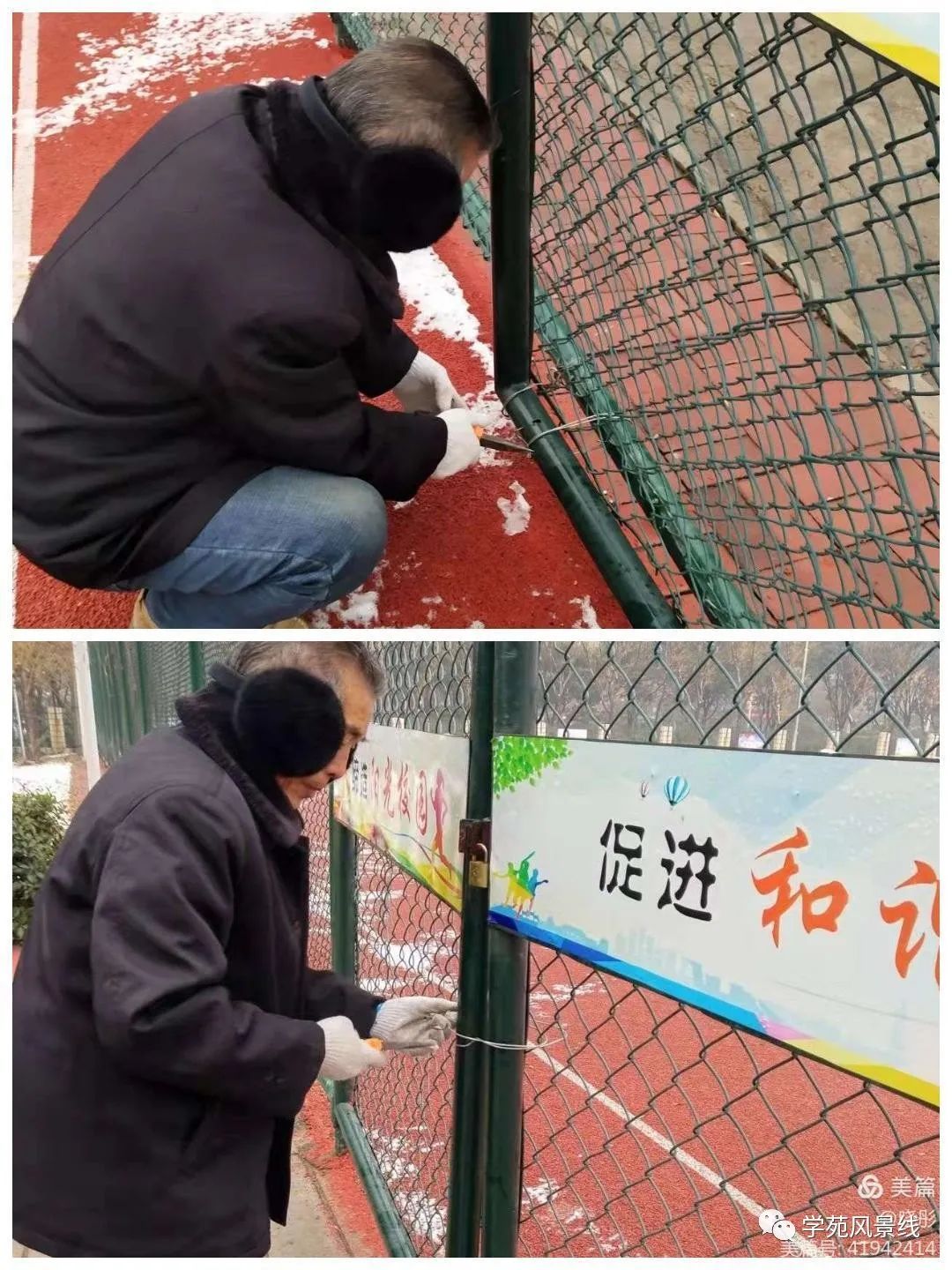 疫情来得突然,师生离开得也很突然,我校总务处在孙永铎主任的带领下,细心做好学生离校的各项工作:校园消杀,操场等基础设施的维护,门窗、电源、水龙头的关闭……刺骨的北风、肆虐的冷雪、冻僵的双手、几近花甲之年等等,这些问题在“责任”二字面前都显得微不足道!