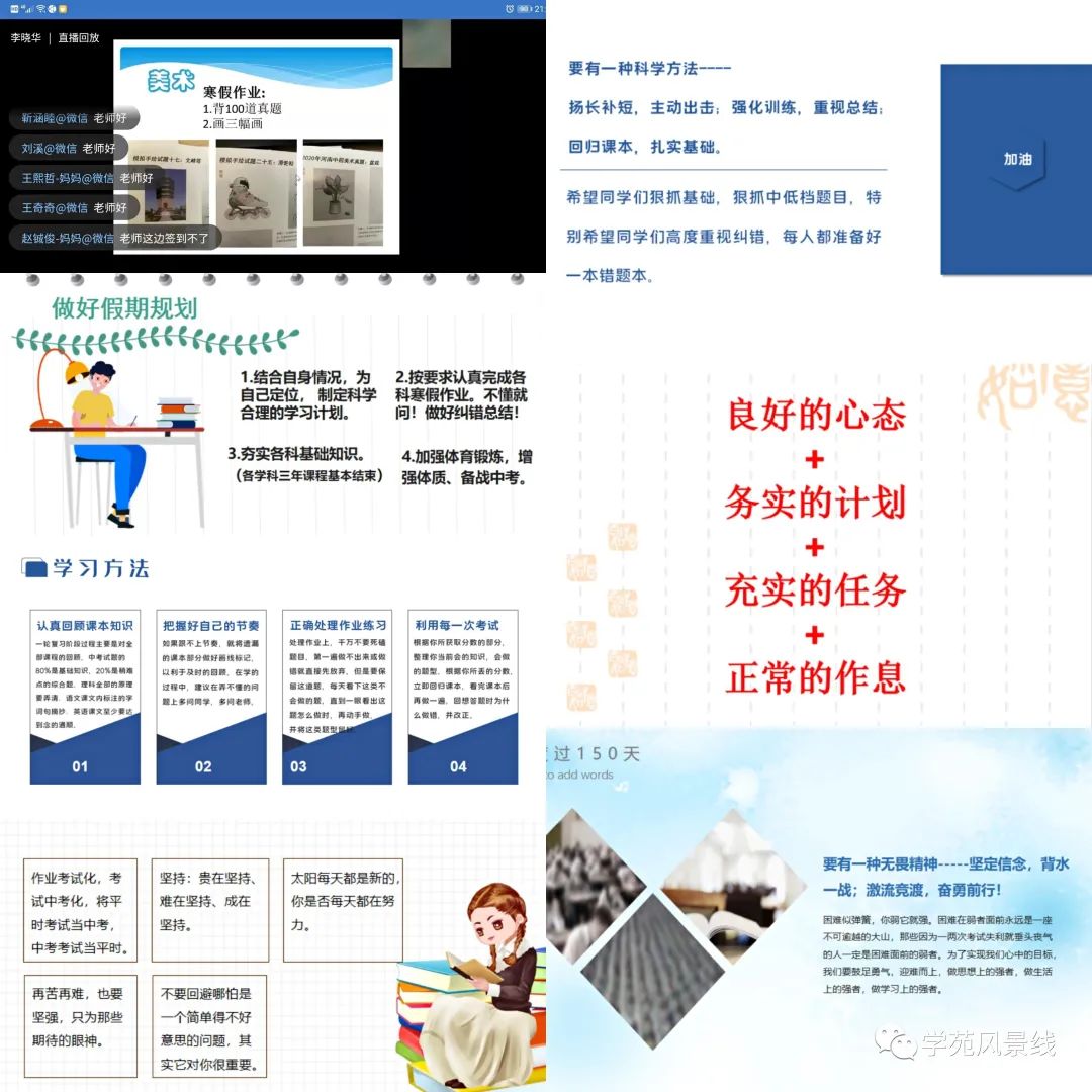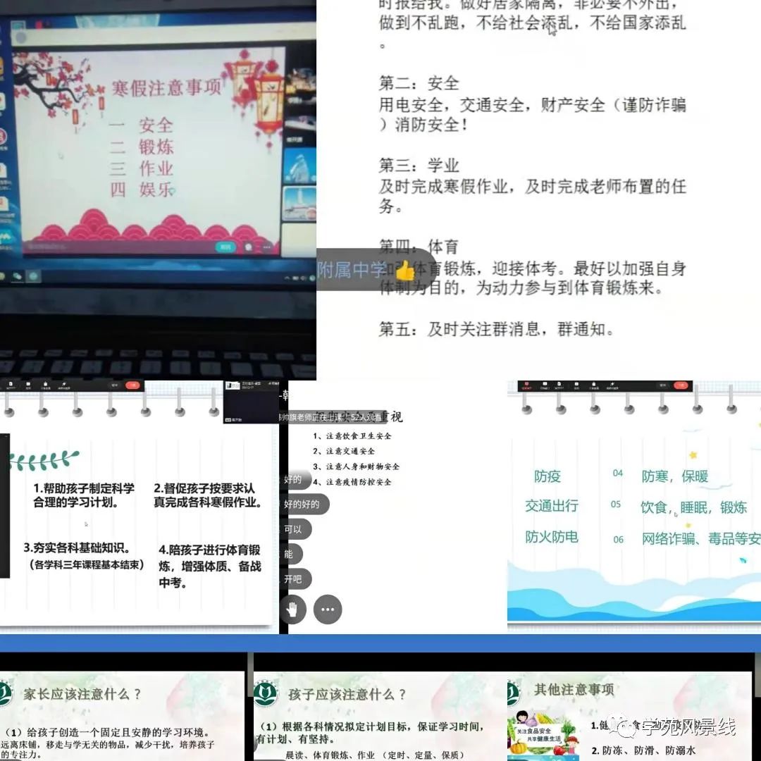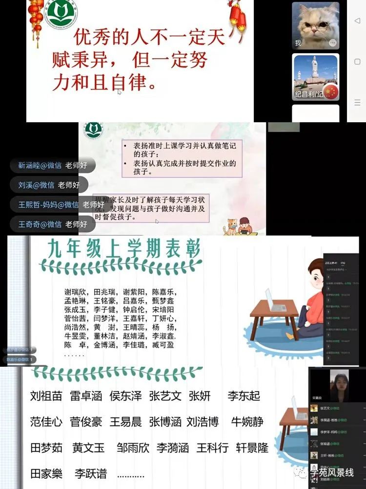 不一样的形式,一样的精心准备,一样的用心交流。在学校领导的统一部署下,各年级分管校长、年级主任细化安排,各位班主任集思广益,搜集、共享各种资料,结合本班学情制作ppt、录视频、准备发言稿,每个细节都倾注了老师对孩子们满满的关怀与爱。