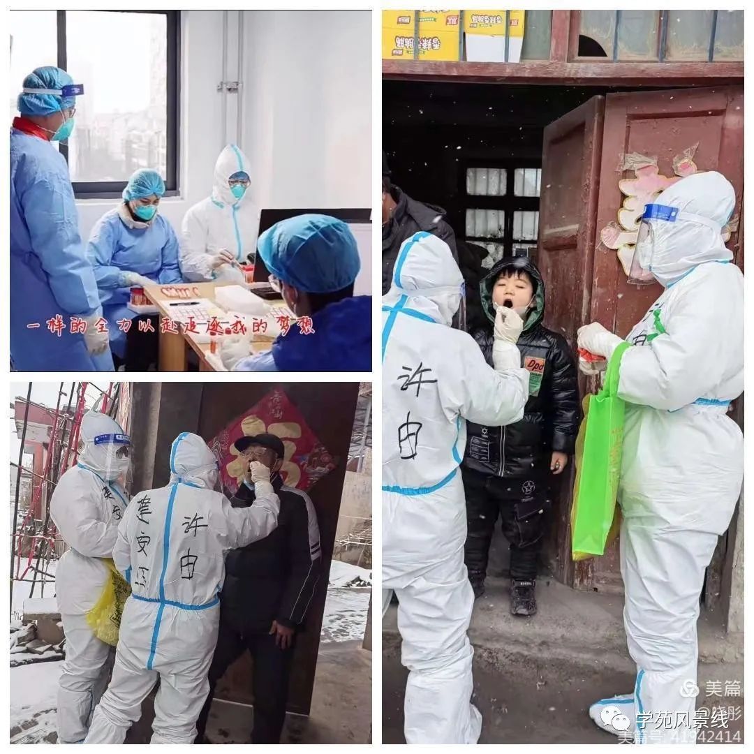 九二班周鹏宇的姐姐是支援禹州的医护人员,1月8日,她前往高风险区禹州市梁北镇铁李村,上门采集核酸,一户不漏。