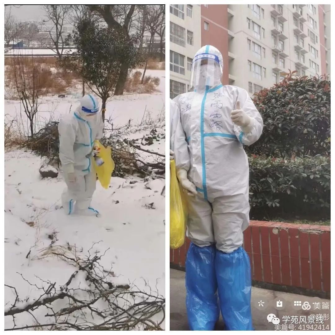 九四班张家豪姐姐张雨露代表建安区医疗队支援禹州抗疫19天,做到“敲门行动,不漏一户,不漏一人” 。顶风冒雪,白衣执甲,佑护生命。