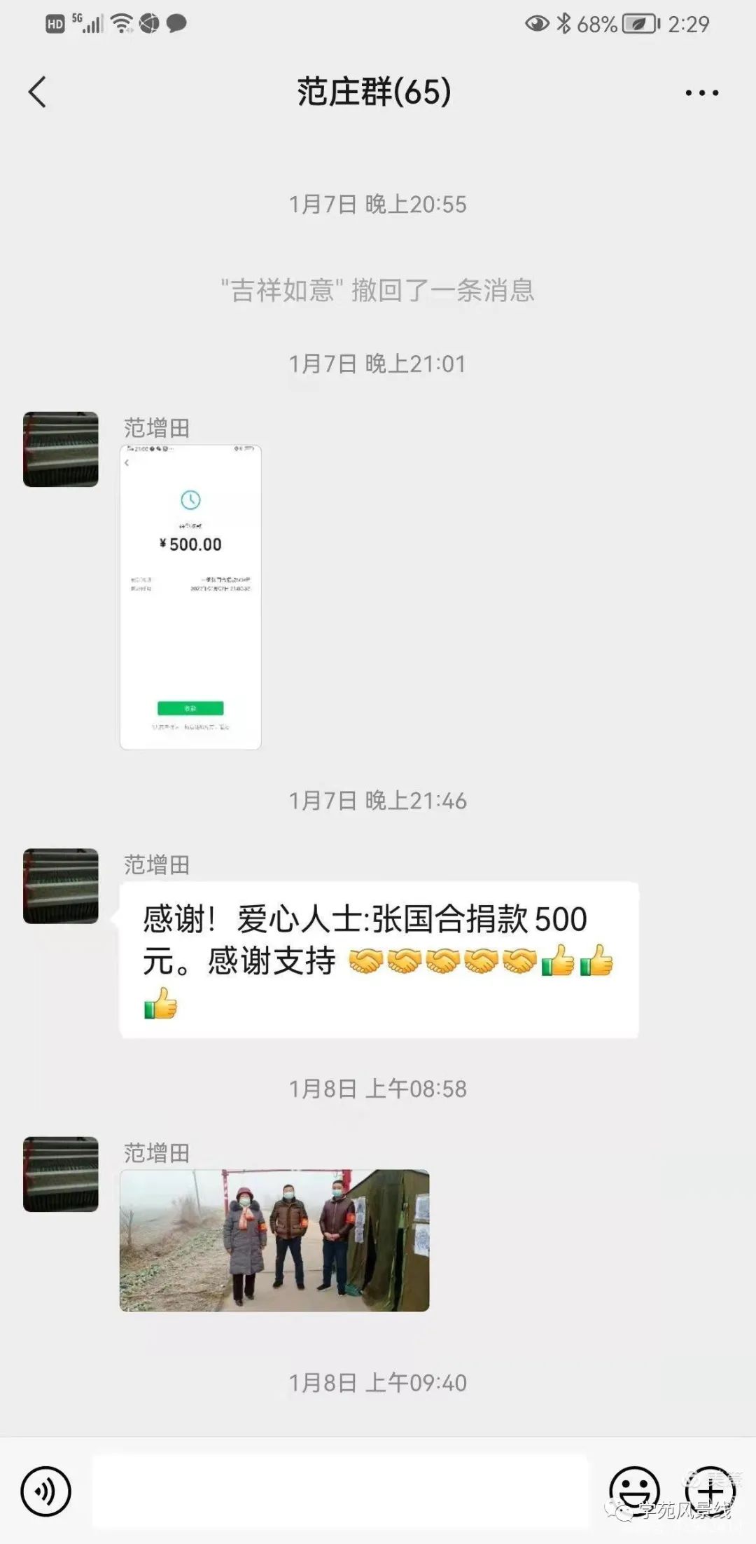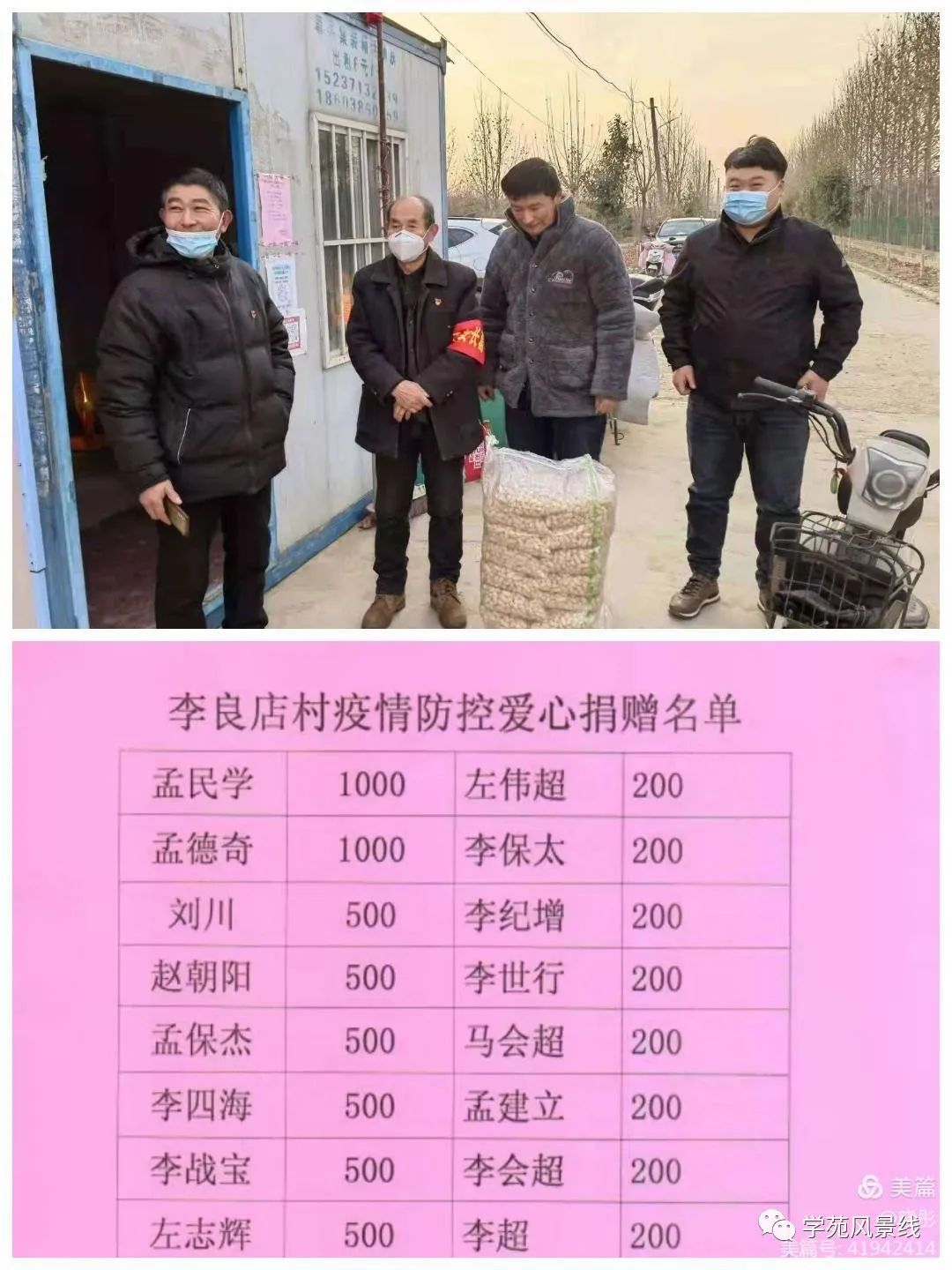 九四班李子铭的爸爸李广杰为李良店社区防控卡点捐赠现金300元及花生一袋。