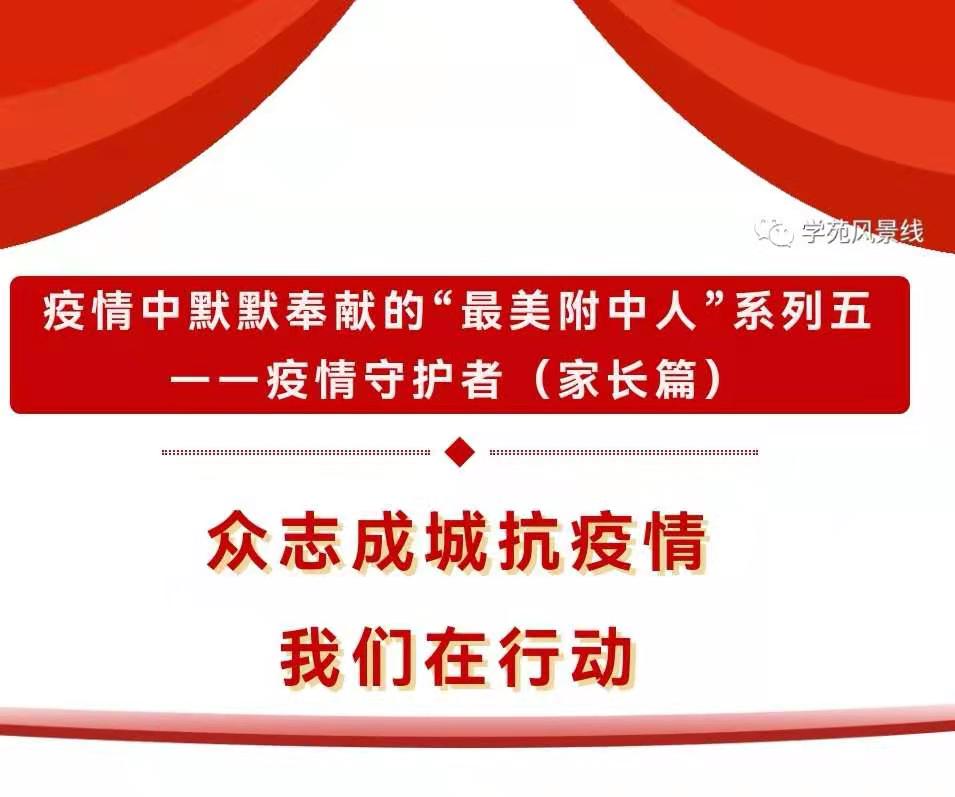 自疫情发生以来,许昌学院附属中学的许多家长朋友,不惧风险,逆行而上,深入抗疫一线,他们舍小家,为大家!全力以赴投入到疫情防控中,用大爱情怀和崇高品质筑起了一道道生命防线,温暖守护着万千家庭。