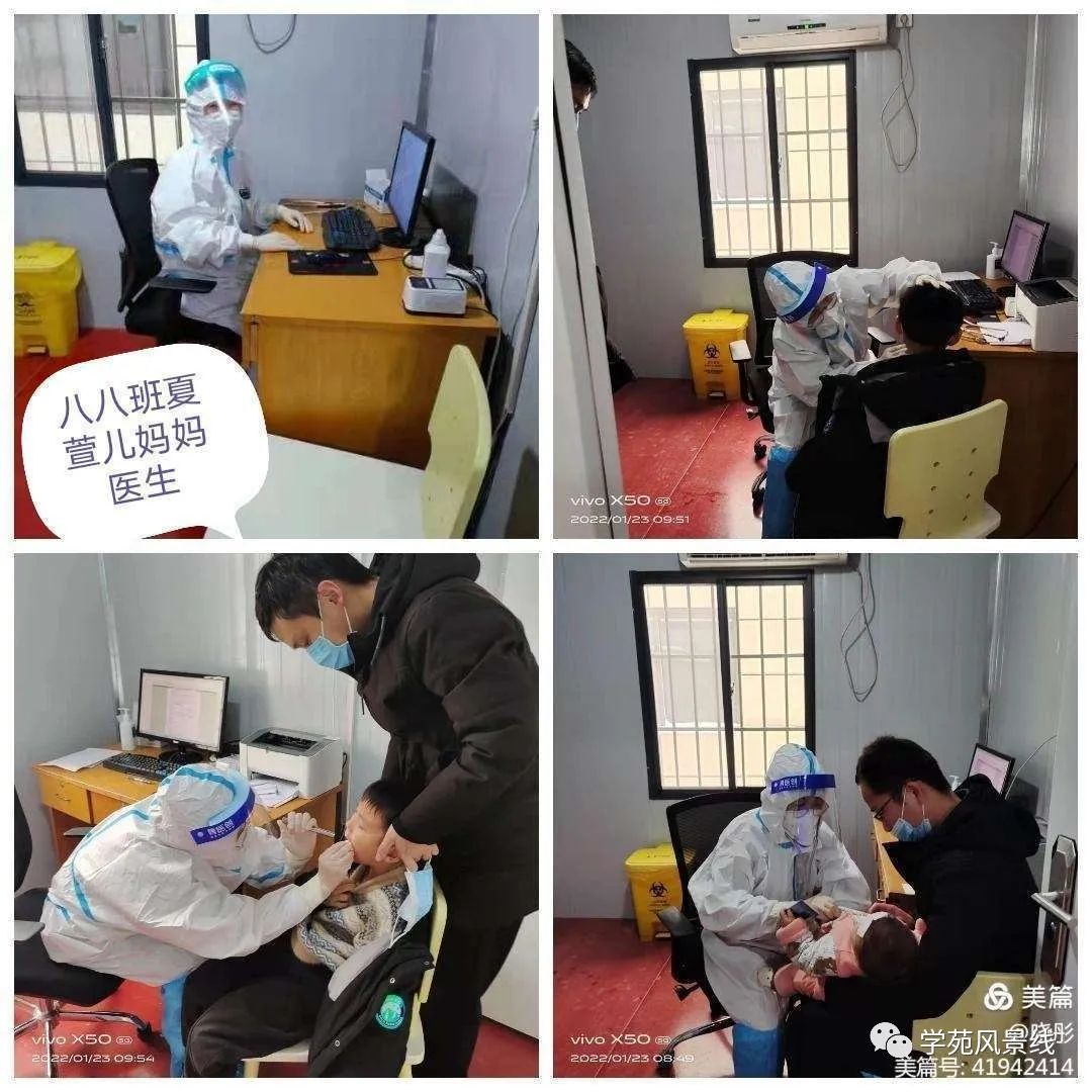 八四班常梓诺的妈妈是长葛市董村镇卫生院的医生,疫情期间不但要做好医院的工作,还要每天到村里给居家隔离人员做核酸检测。在全市核酸检测期间,还支援石固镇和长葛市建南社区,参与核酸检测工作。