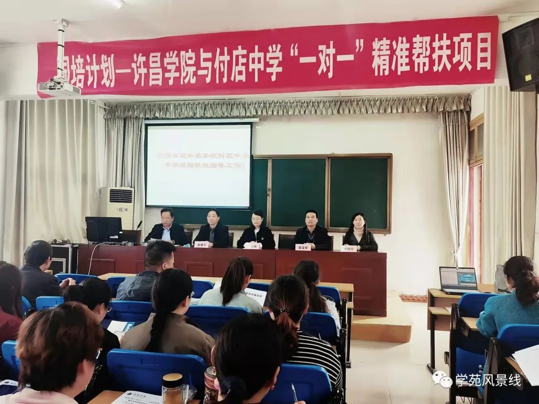 为持续助推许昌学院附属中学与付店中学“一对一精准帮扶”国培项目,按照帮扶计划安排,3月11日-13日,许昌学院数理学院书记牛裕琪、副书记苗宝军,许昌学院附属中学校长崔俊平、业务副校长陈敏、教务处主任李晓华及附中名师再次到潢川县付店中学,持续开展校际帮扶活动。