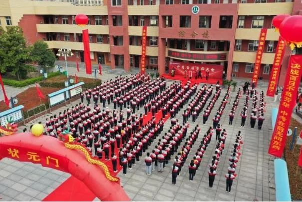 为鼓舞学生士气,激励九年级学生全力冲刺中考,今年3月18日,许昌学院附属中学召开“百日冲刺”中考誓师大会。大会开始前,该校九年级学生排队穿过“状元门”,踏上红地毯,在教学楼前列成整齐的方队。随后,誓师大会在雄壮的国歌声中拉开帷幕。大会上,教师代表和学生家长代表相继发言,表达了他们对学生的支持与鼓励;学生代表也激情演讲,表达了勇于拼搏的决心。校领导也寄语学生,要头抬高、脚走稳,目标明确、脚踏实地,做到心态平和、相信自己,树立中考必胜的信心。只有坚定信念,勇往直前,才能在千军万马的挑战中脱颖而出。