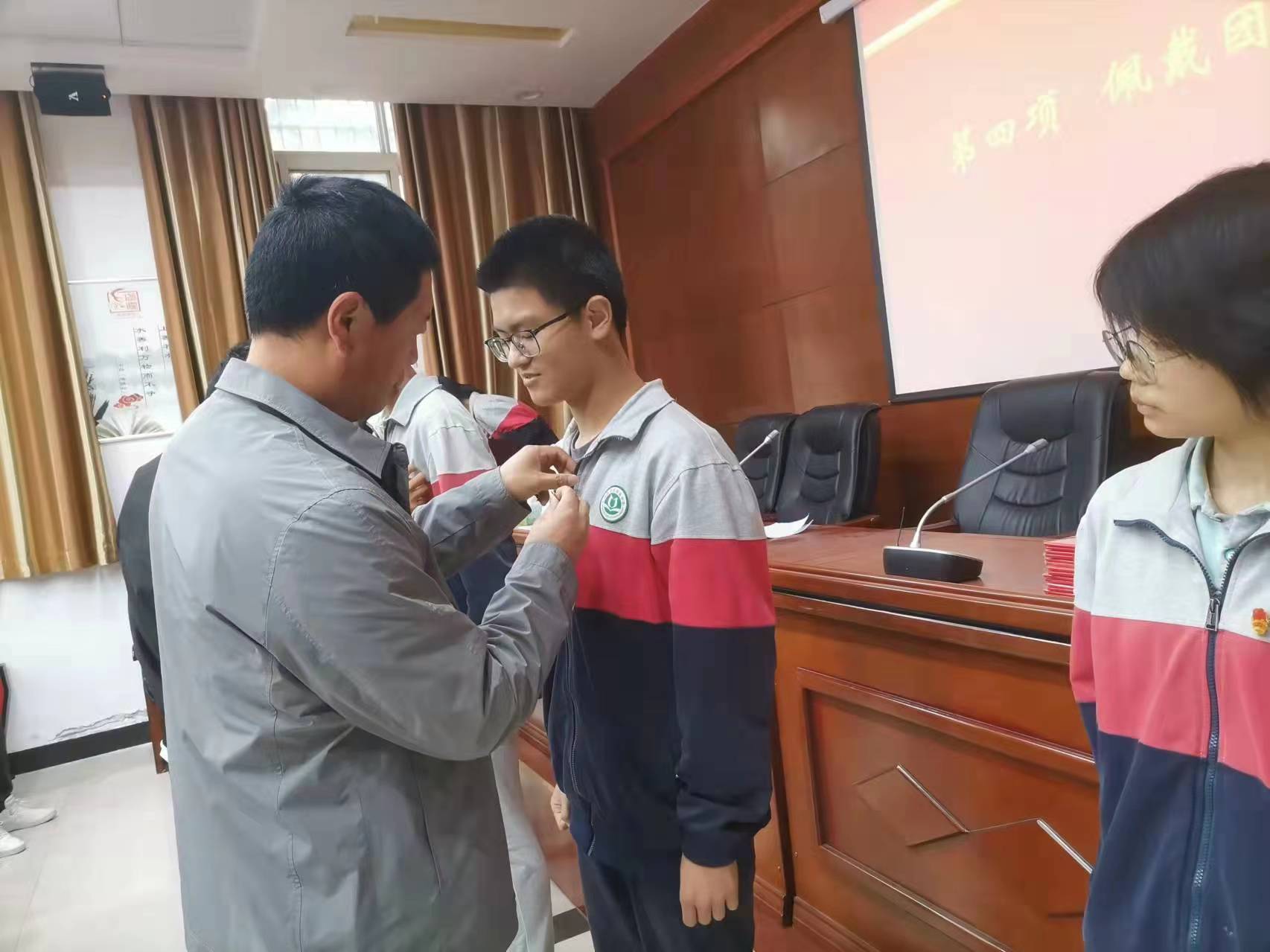 左胸前的团徽,不仅是一个标志,更是一份责任!校领导和老团员们亲自为新团员们佩戴团徽,从此刻起,你们就是光荣的共青团员,这是你们人生中的一大步,更是值得你们骄傲和自豪的时刻!