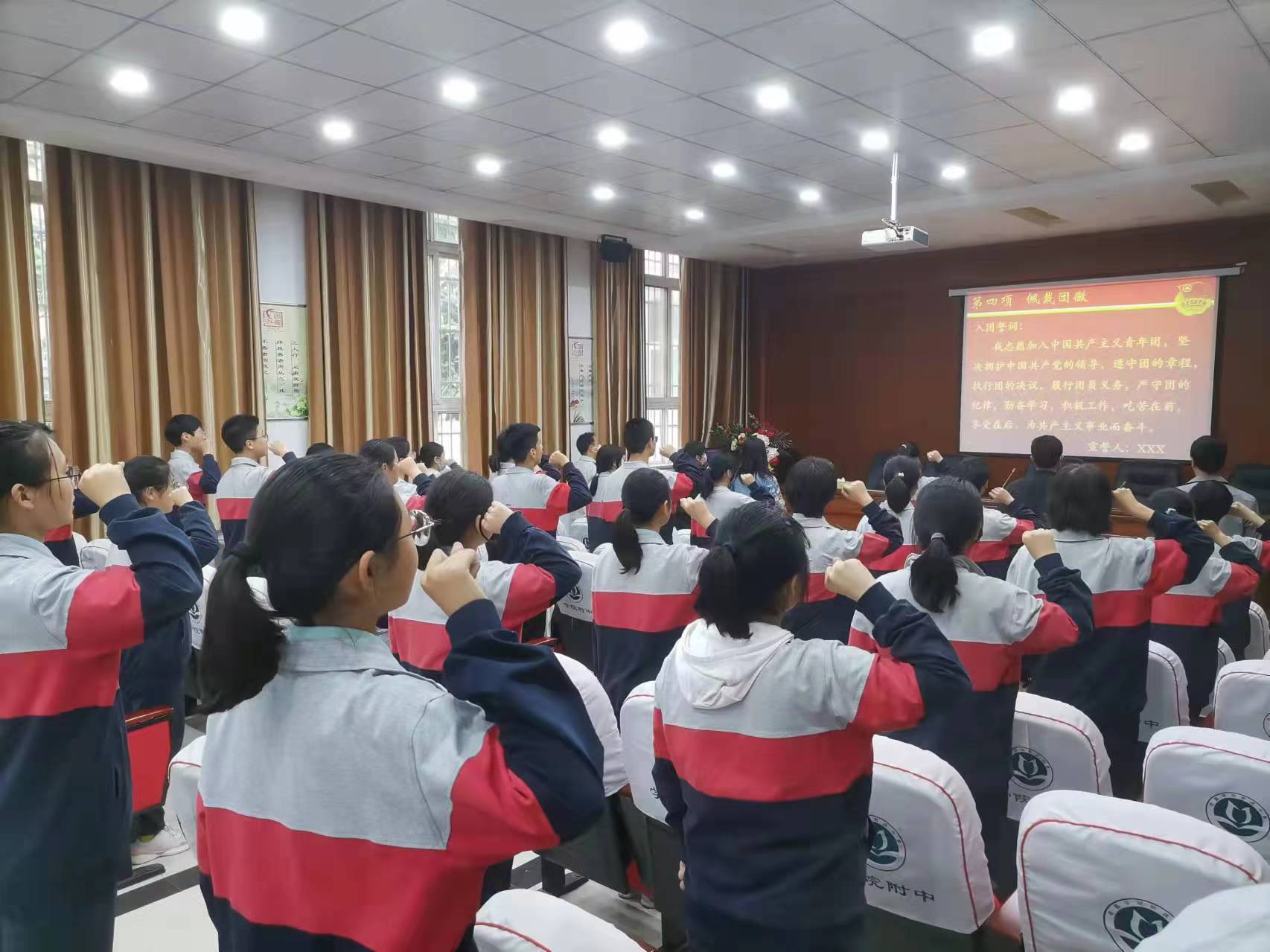 面对鲜艳的团旗,新团员们发出慷慨激昂的入团誓言,他们举起右拳、面向团旗庄严宣誓,用坚定的誓言表达了成为一名共青团员的责任和担当,老团员也一起重温了入团誓词,再一次坚定了初心和使命。