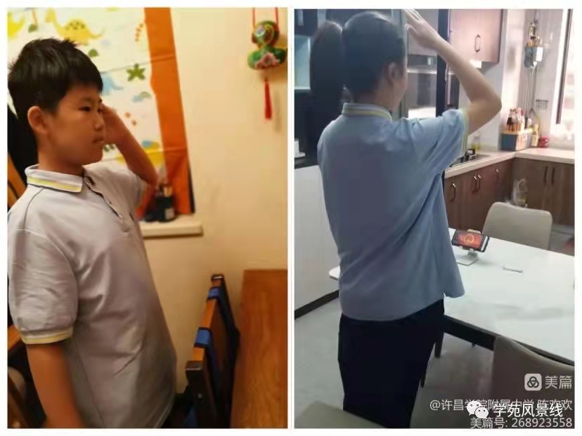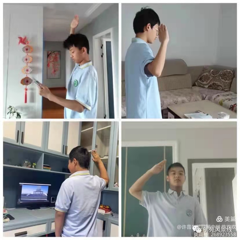 不同的空间,同样时间,一股股爱国的暖流,在线上升旗仪式中升腾汇聚。整齐的校服,挺拔的站姿展示着附中学子的精神风貌,流露着附中学子饱满的爱国热忱。
