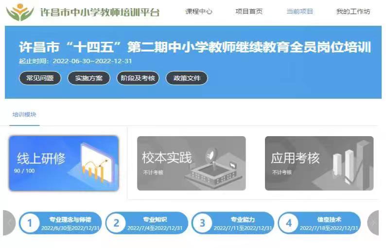 培训一: 许昌市“十四五”第二期中小学教师继续教育全员岗位培训。培训内容涵盖专业理念与师德、专业知识、专业能力、信息技术等方面,全面提升教师专业素养。