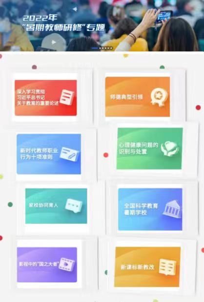 培训三:国家中小学智慧教育平台2022年“暑期教师研修”专题培训。借助平台丰富的课程资源,教师可以获得多方面的提升。《义务教育课程方案和课程标准(2022年版本)》已发布,今年秋季开始就要落实到课堂教学中,义务教育新课标解读模块,既有对课程方案和课程标准的通识性培训,还有具体的学科课标解读,助教师解落实课标的理论和方法之惑。