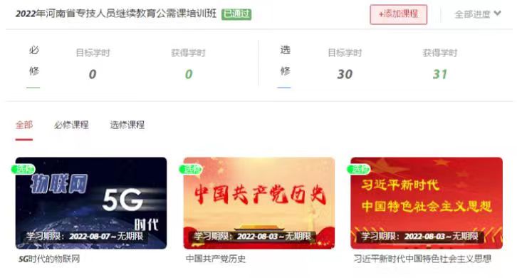 培训四:河南省专业技术人员公需课培训。以《中国共产党党史》和《习近平新时代中国特色社会主义思想》为主要内容的专业学习,有助于提升教师的思想政治素质,不忘初心,为党育人,为国育才。