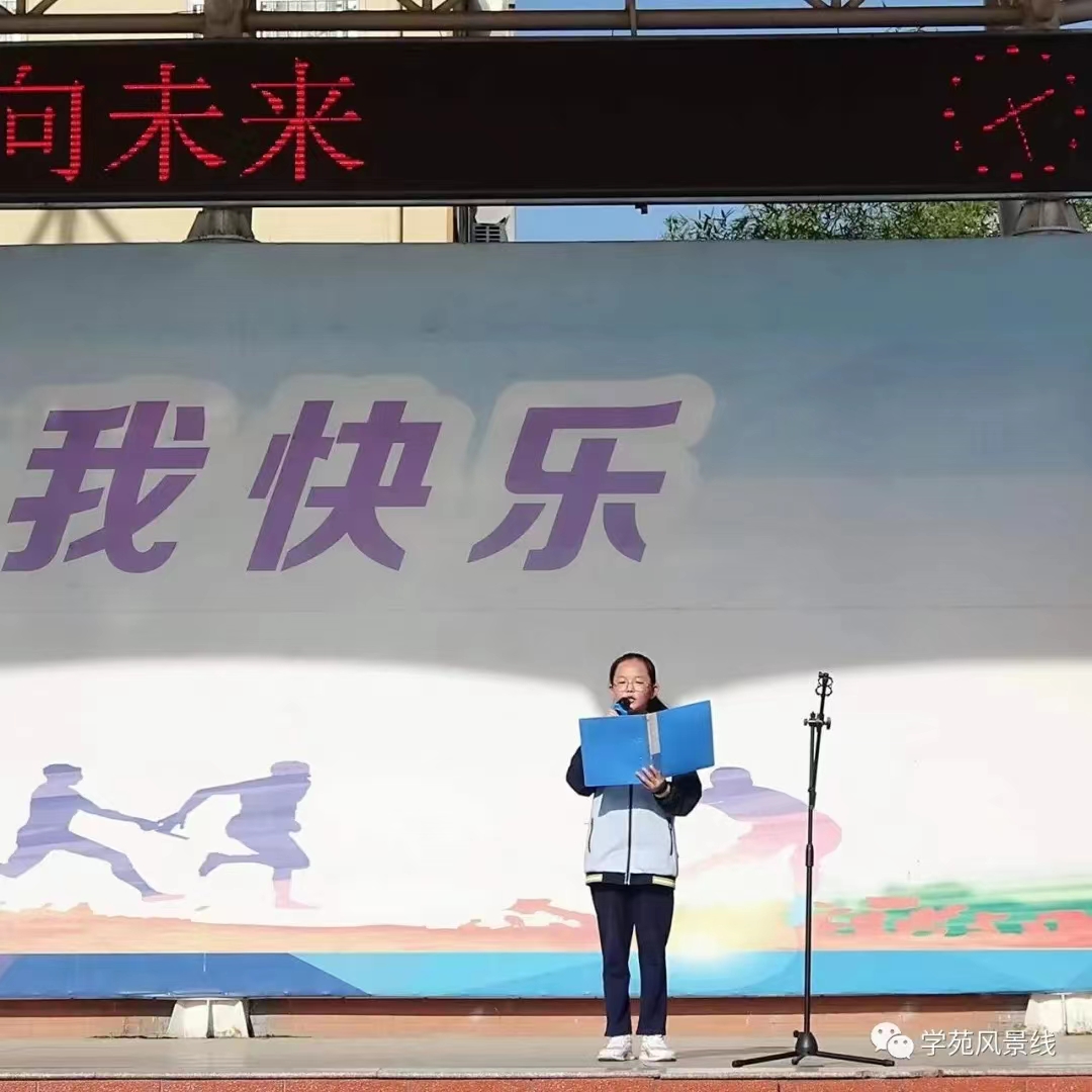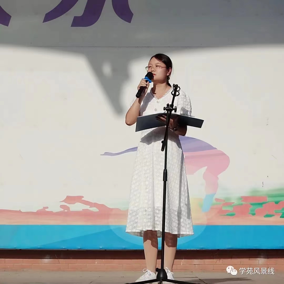 八(4)班寇怡涵作为学生代表发言,她表示新学年扬起新风帆,新学期承载新梦想,希望同学们养成良好的学习习惯,以自觉的精神,顽强拼搏的勇气,刻苦学习,去实现自己的远大理想,不负青春,为建设强大祖国而时刻准备着。