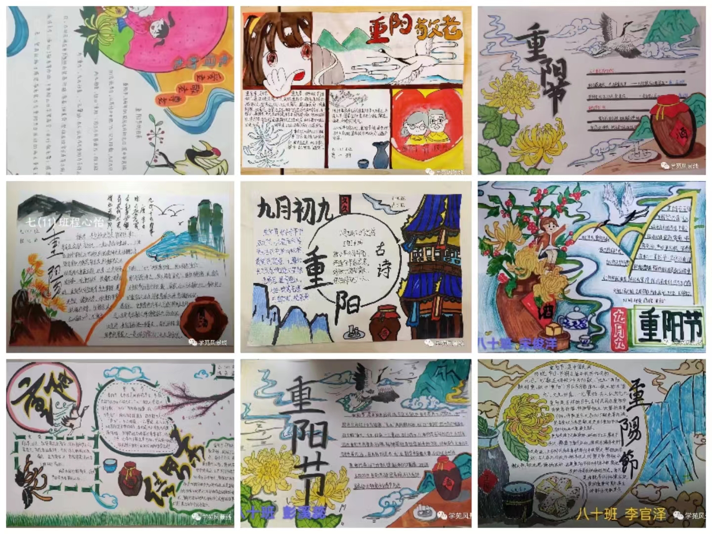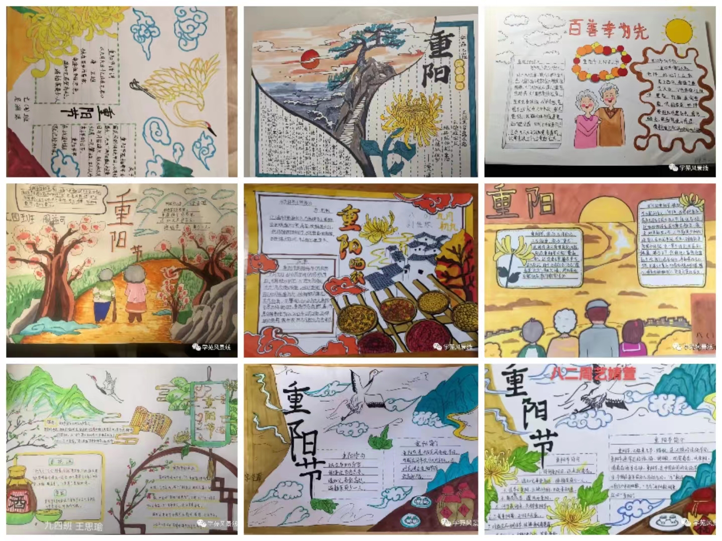 “重阳节”手抄报比赛,让学生们绘下一幅幅构思独特的画卷,写下一句句温暖的话语,每幅作品都满载着他们对长辈的温馨祝福。