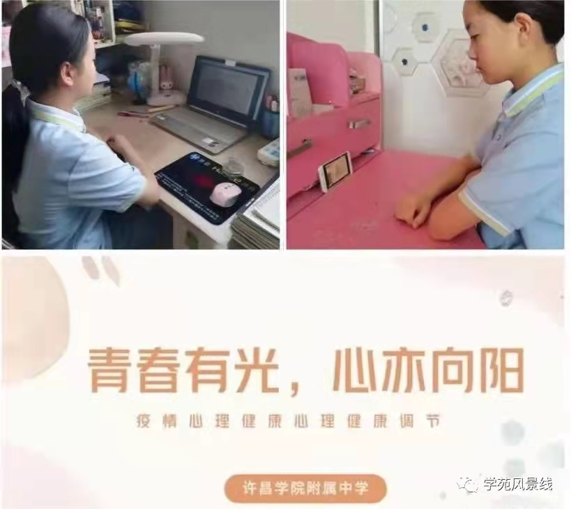 疫情当前,为进一步加强生命教育、劳动教育、心理健康教育,让学生在疫情期间形成良好的生活、学习习惯,使学生会思考、守规矩、懂感恩、明事理,拥有积极阳光、乐观向上的心态,努力让所有学生跟上学习节奏,许昌学院附属中学精准施策、统筹安排,保障学生线上教育教学顺利开展,同时综合开展多项心理健康教育活动,对学生在疫情期间进行心理调适和心理抚慰。