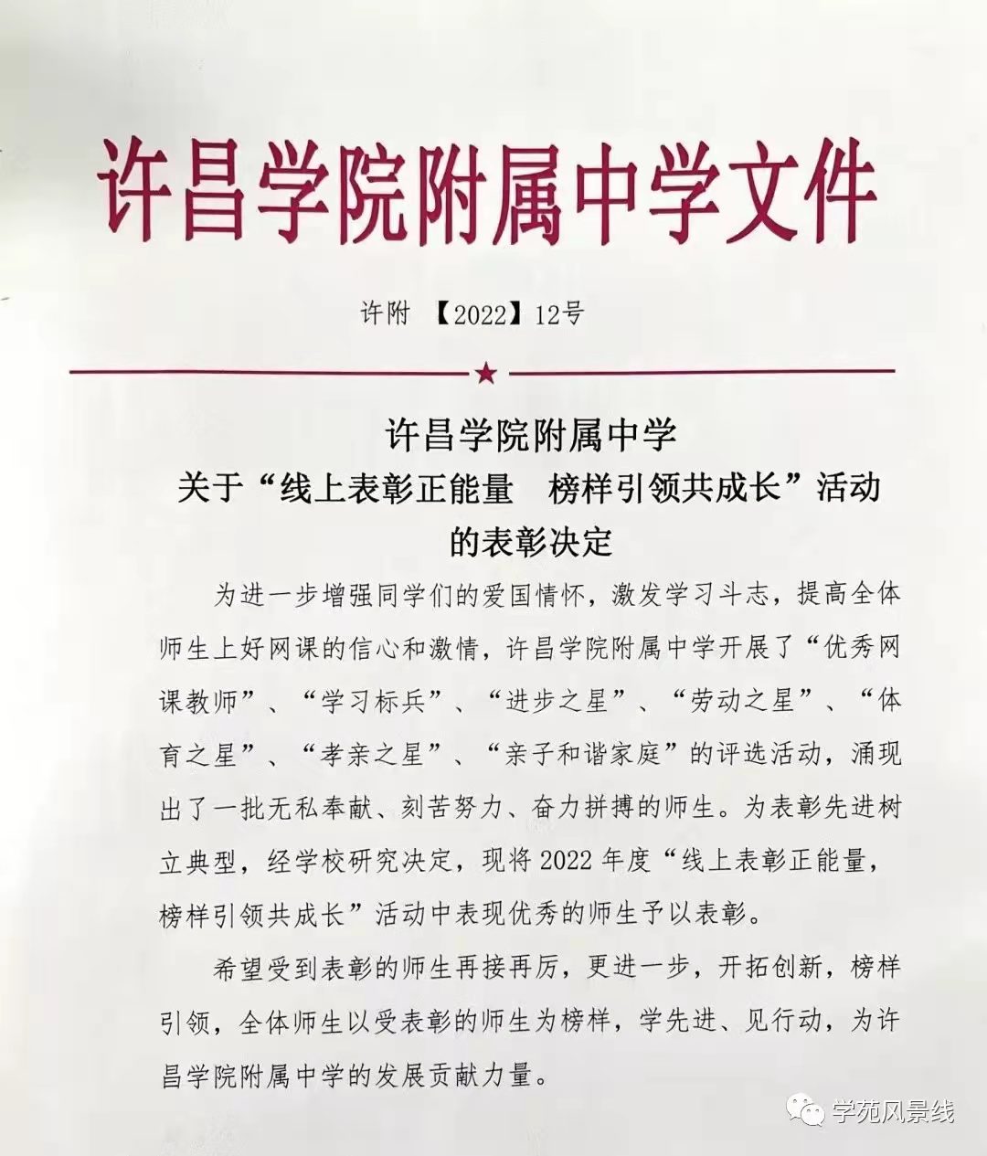 2022年1月,许昌学院附属中学被评为许昌市家校共育示范校;