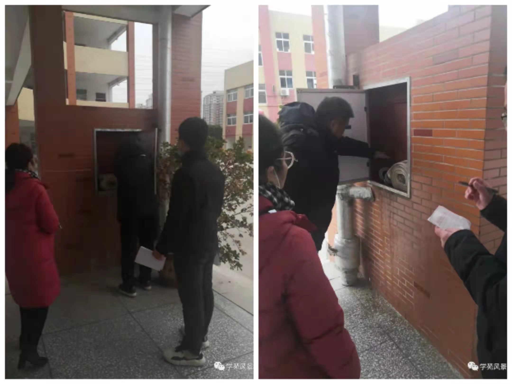 海平副校长带领安保办工作人员对学校安全指示牌、消防设施等进行安全隐患排查。