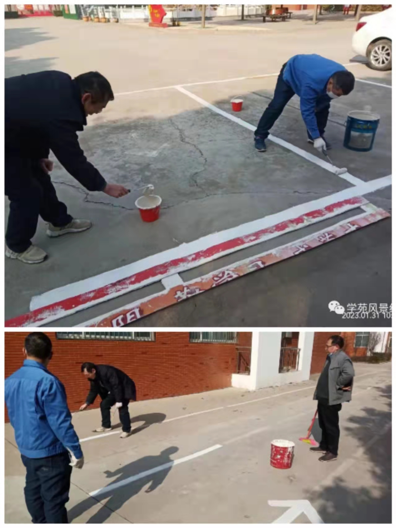后勤工作人员对校内车位重新画线,为学校安全工作添砖加瓦。