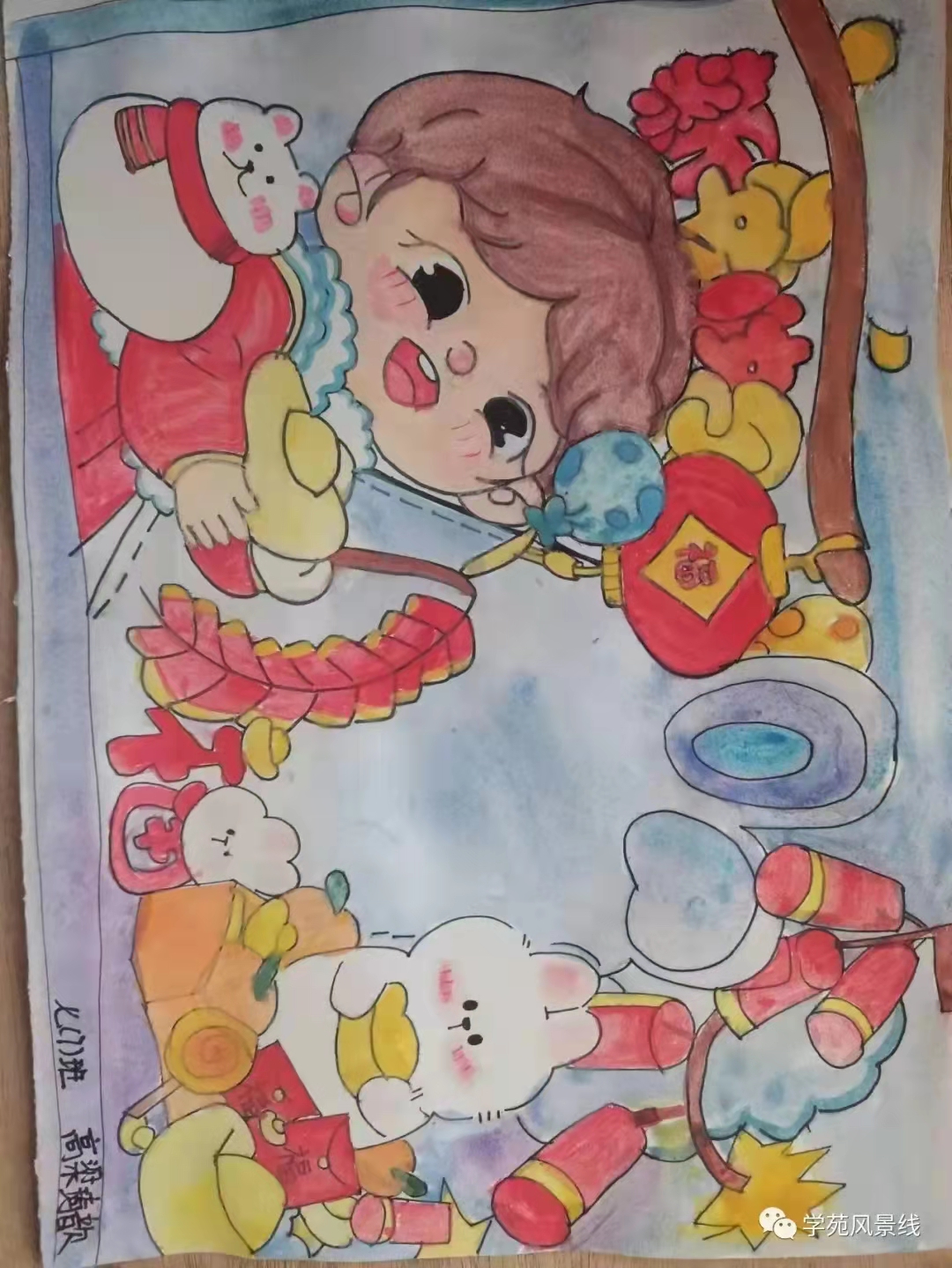 孩子们大胆想象、认真构思,将心中对新年的期盼、向往用绘画的形式表现出来,一幅幅主题鲜明、栩栩如生的作品充满了童真,给人美好的享受。
