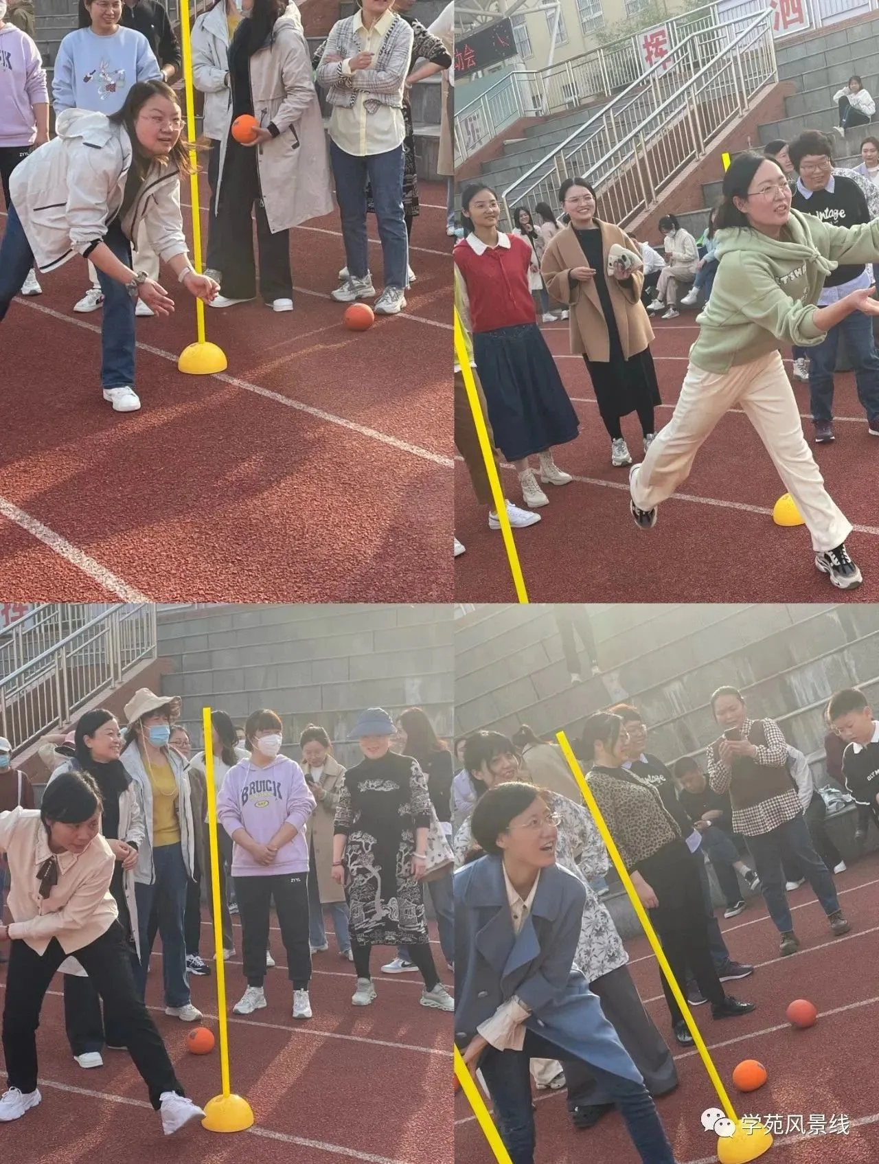 在投掷“保龄球”环节中,老师们下蹲、蓄力、抛出,每一个步骤都在井然有序地进行着!