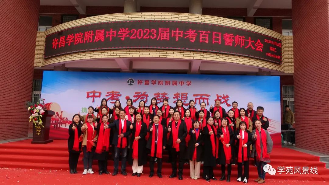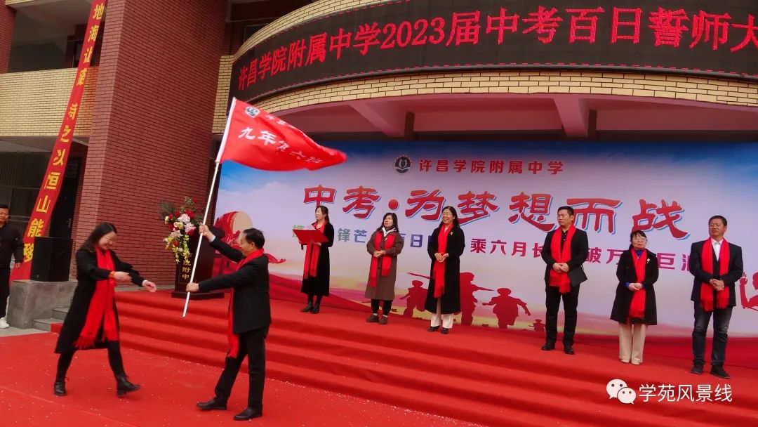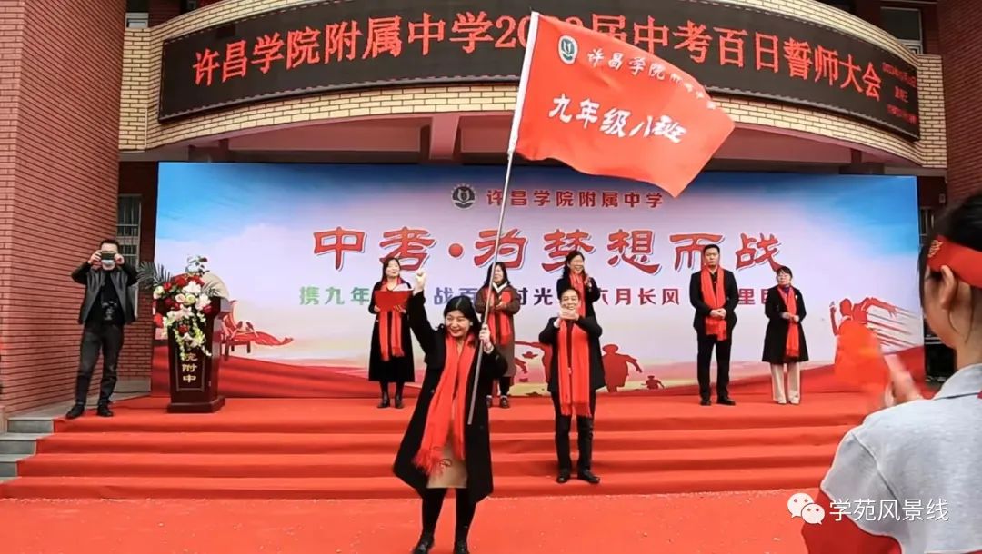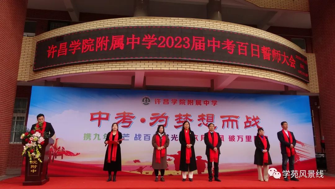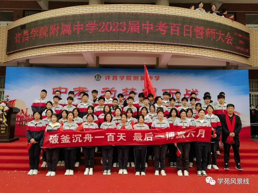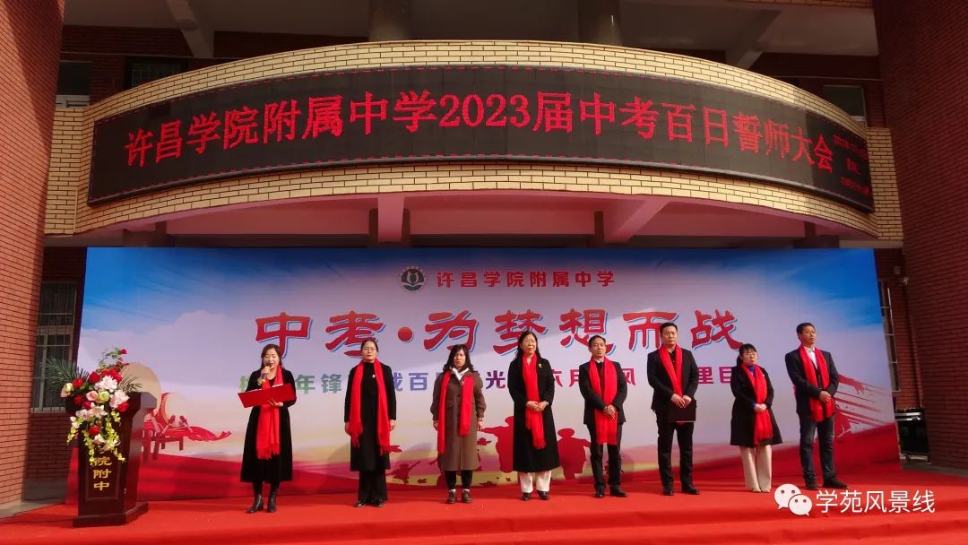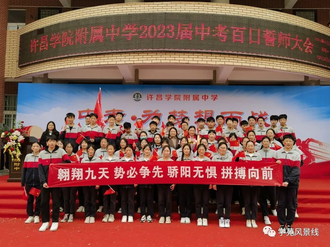 春暖花开之际,决战冲刺之时,3月15日上午9:00,许昌学院附属中学隆重举行2023届中考百日誓师大会,擂响了初三冲刺的嘹亮战鼓。学校领导班子、九年级全体师生及家长代表出席了大会,会议由政教处主任周俊英老师主持。