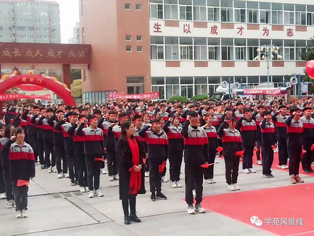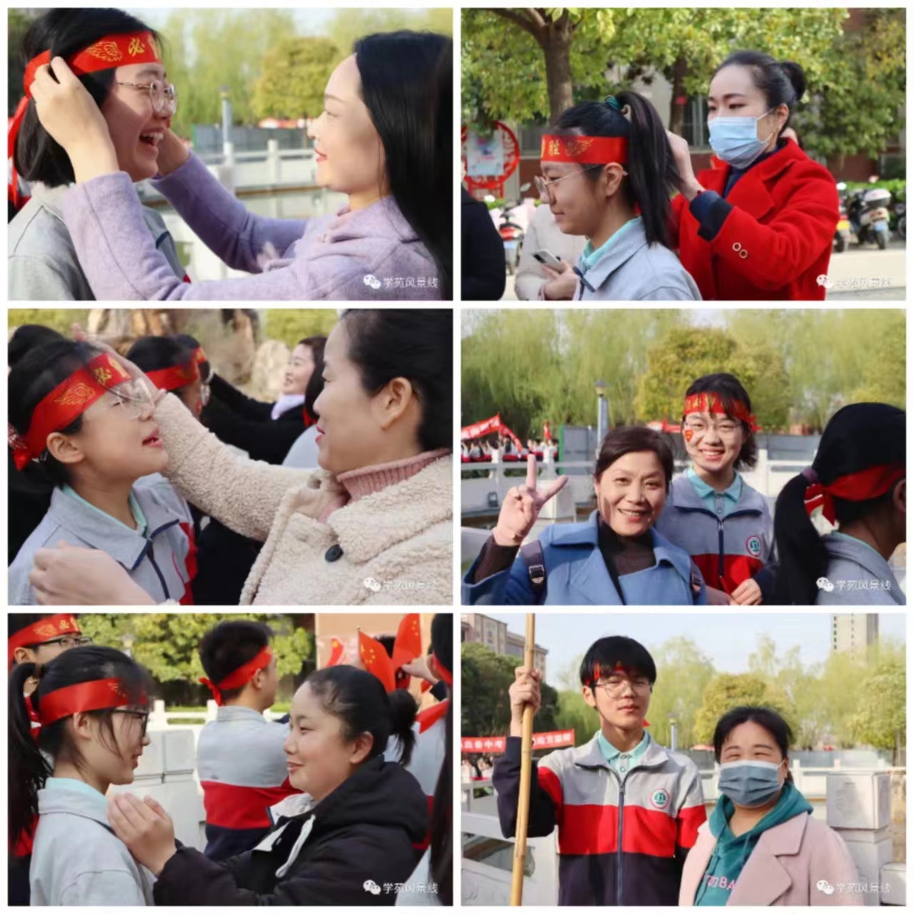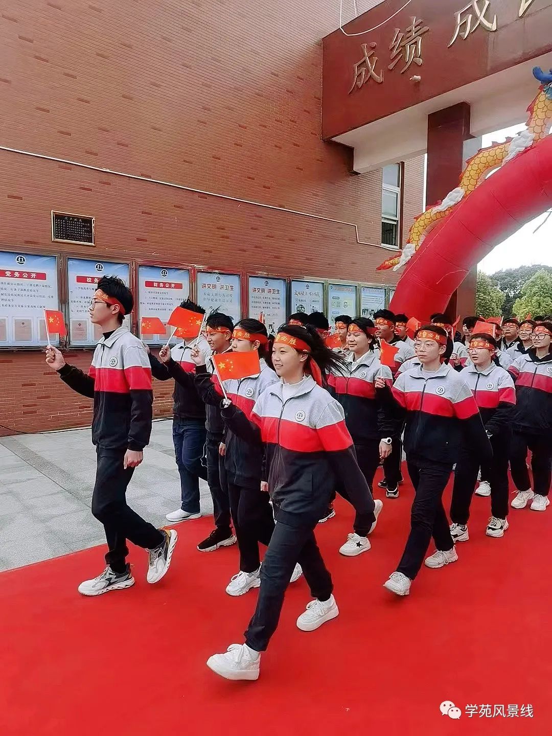 化身青鹏争霄汉,只待锦鲤跃龙门。在隆隆的战鼓声中,同学们手举红旗,拉着横幅,迈着坚定的步伐,昂首阔步走向“状元门”,校领导及初三全体教师,分列两侧与学生击掌,给予最真挚的祝福。