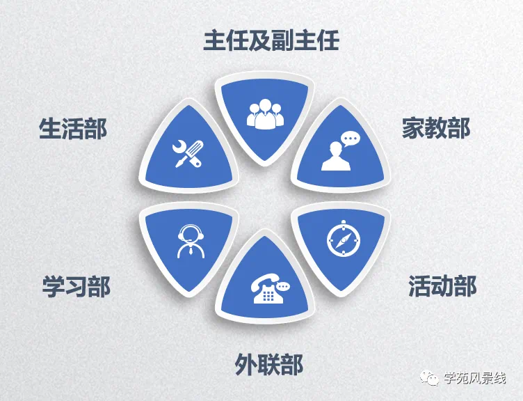 校级家长委员会成员主要由热心教育,关心孩子成长,热情支持学校工作,并有较强组织能力的学生家长组成。学校家委会设立主任及副主任各一名,并将成员分为学习部、生活部、家教部、活动部及外联部,通过分组,家委会成员能清晰明确各自职责分工,更好地开展家校活动。