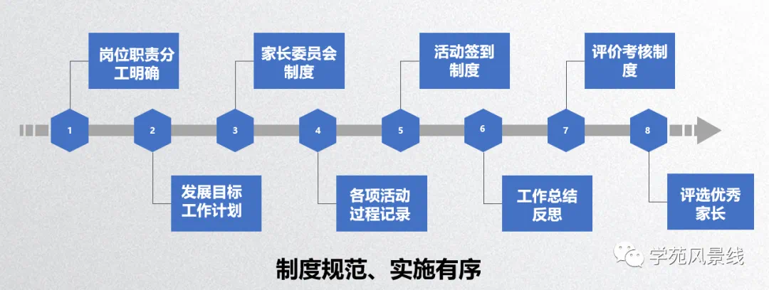 为了使家校共育工作更具规范性、程序性,为我们的家校共育工作提供可遵循的依据,我校制定了一系列的家校共育工作制度及相关文件。明确了各岗位职责分工,制定了家校共育发展目标、工作计划、家长委员会制度、活动签到制度、评价考核制度,同时要求各项活动均有过程记录和总结反思。通过抓紧各项制度文件的落实,切实提高了家校共育质量。