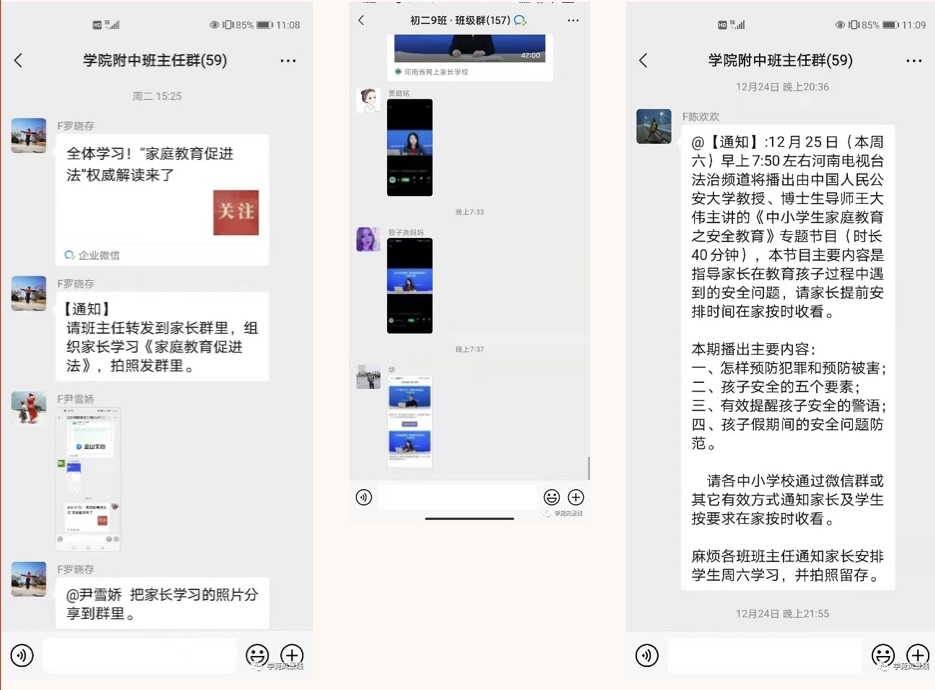 我们既重视传统的家校联系方式(家访、家长会、电话等),也及时发掘现代信息工具开辟家校联系新渠道(企业微信、校讯通、公众号等)。充分利用每一种沟通渠道,加强家校联系。