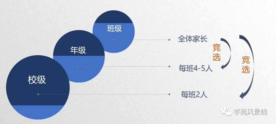 我校建立多层次的家长委员会组织机构(班级、年级、校级)。班级家委会由全班学生家长组成,年级家委会由各班家长竞选产生,每班选出4-5人,校级家委会由各班家长竞选产生,每班2人。
