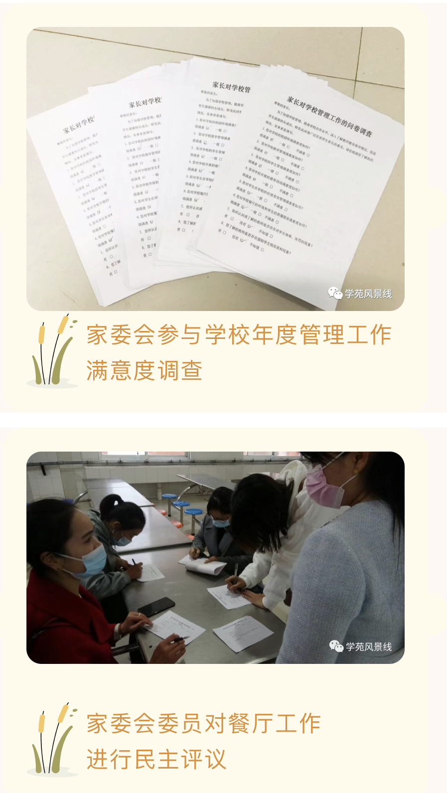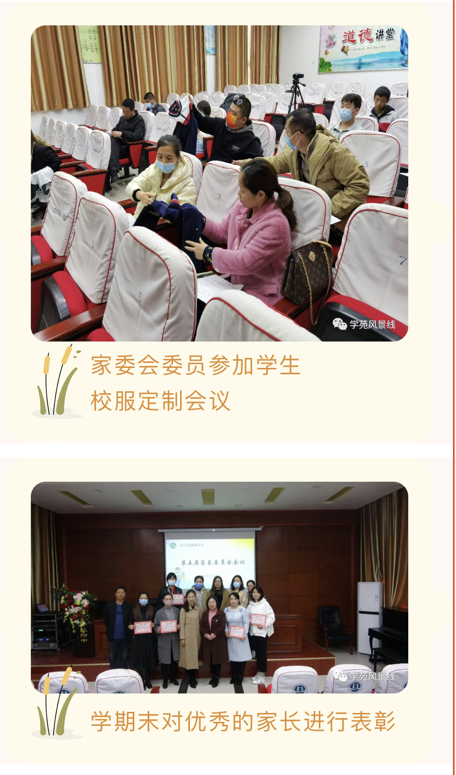 家委会定期举行会议,听取学校发展规划、教育教学工作安排等方面的情况,并为学校的发展献计献策,就家长、学生、社会等反映的有关问题及时与学校进行沟通协商。