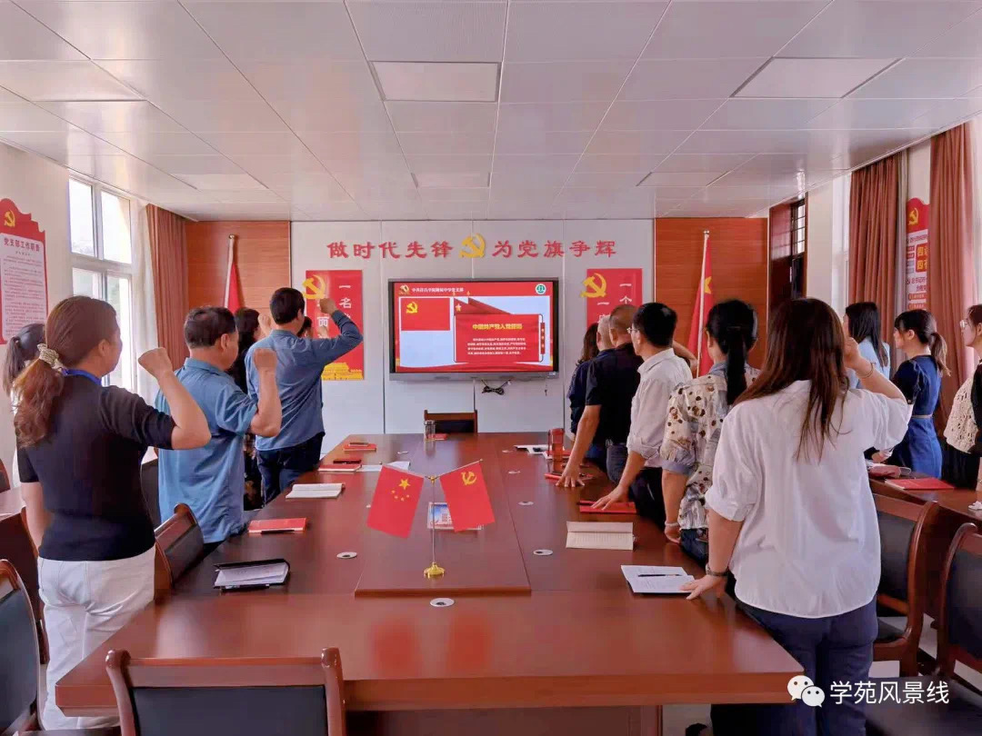 最后,全体党员集体宣誓,重温入党誓词,不忘初心。党办主任周国建同志和大家分享了自己工作生活中的心得,希望在座的青年骨干教师向优秀党员看齐,积极主动加强政治学习,提升能力,在实践中深化对党的认识,在生活中严格要求自己,以实际行动向党组织靠拢。
